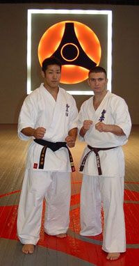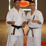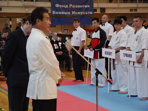 Меня поздравляет президент международной федерации Karate Kyokushinkan – Hatsuo Royama.