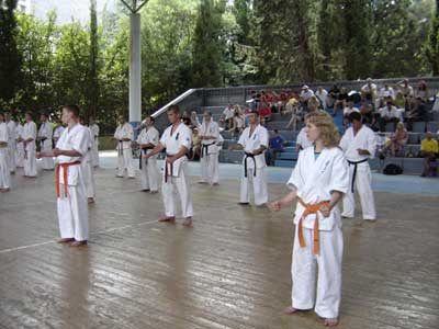 В живописном уголке Крыма прошел второй европейский семинар с участием более 150-ти инструкторов и учеников с различных стран. Германию представлял только Сэмпай Алексей из клуба „Данкецу“. Начало сборов было омрачено известием о смерти матери Канчо Хоцуо Роямы. В связи с этой трагедией он не смог присутствовать на сборах. Однако на проведение аттестационного экзамена это не оказало негативного влияния. После трех дней упорных тренировок, которые длились по 2,5 часа три раза в день, так что искупаться в черном море не хватало ни времени, ни сил, отдельных участников ждало главное событие – экзамен. Неожиданной новостью для всех оказалось участие сборной России в семинаре и участие в экзамене в качестве спарринг-партнеров.