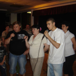 На этот раз в нашей большой спортивной семье произошли изменения – появились 10 отдельных маленьких семейств… каждый ребенок выбрал себе одного взрослого, в настоящей жизни не являющегося родственником ему. И тут началось – караоке и инсценированные анекдоты, конкурсные танцы и „кто хочет стать миллионером“, детские и не очень интеллектуальные игры. Короче всё как всегда классно и круто, но ещё и не обычно! Апофеозом вечера явилось награждение чемпионов именными майками – каждый, кто в нашем клубе станет чемпионом с 2007 года, получает майку с надписью „чемпион“ на спине и со своим именем!