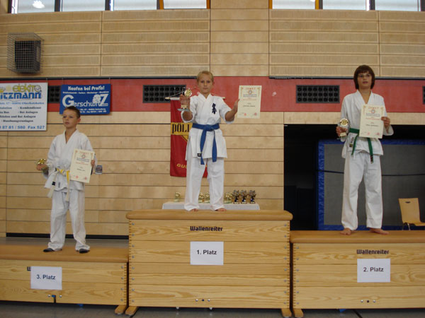 Крис шокировал судей сначала названием ката – „Суси-хо“ (не все судьи могут выполнить это высшее в каратэ ката), а затем и своим техническим исполнением. После первого круга он уже лидировал среди своих соперников в разделе – ката до 12-и (!) лет среди юношей. После выполнения во втором круге „пинана соно сан“, результат стал очевиден – с большим отрывом по очкам он стал ЧЕМПИОНОМ Германии!!!