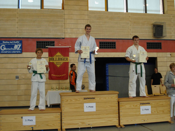 Сборная клуба отправилась на очередной чемпионат Германии. Необычность этих оревнований заключалась в том, что трое из четверых бойцов нашего клуба выступали на соревнованиях по ката! К слову сказать, лишь Бакыт Энгельманн смог выступить один раз на чемпионате Европы в этом разделе каратэ. И до сегодняшнего дня побед в этом направлении у нас не было… Теперь мы можем с гордостью сказать, что умеем не только драться! В нашем клубе появились два ЧЕМПИОНА Германии и один серебряный призер по ката!!!