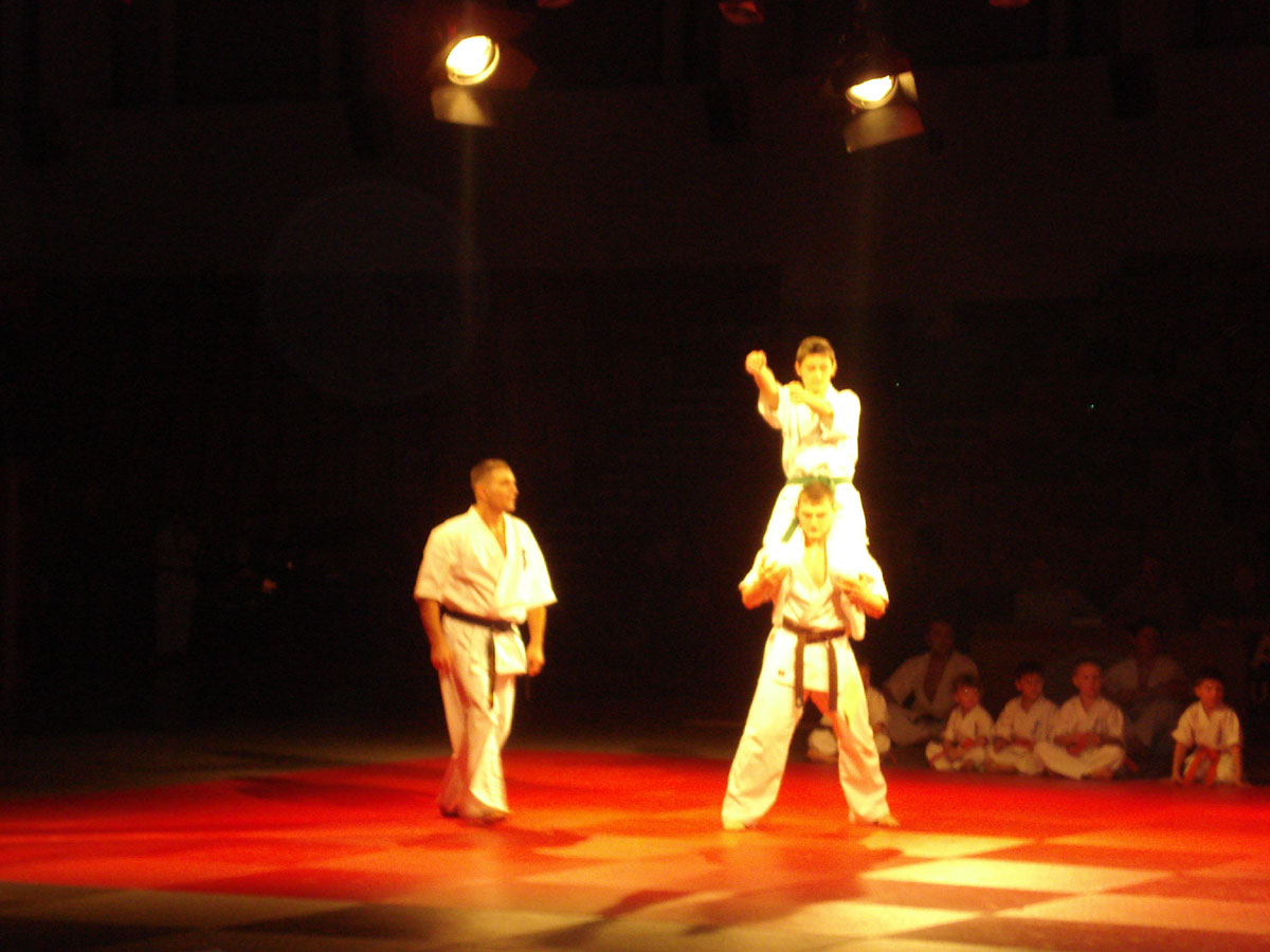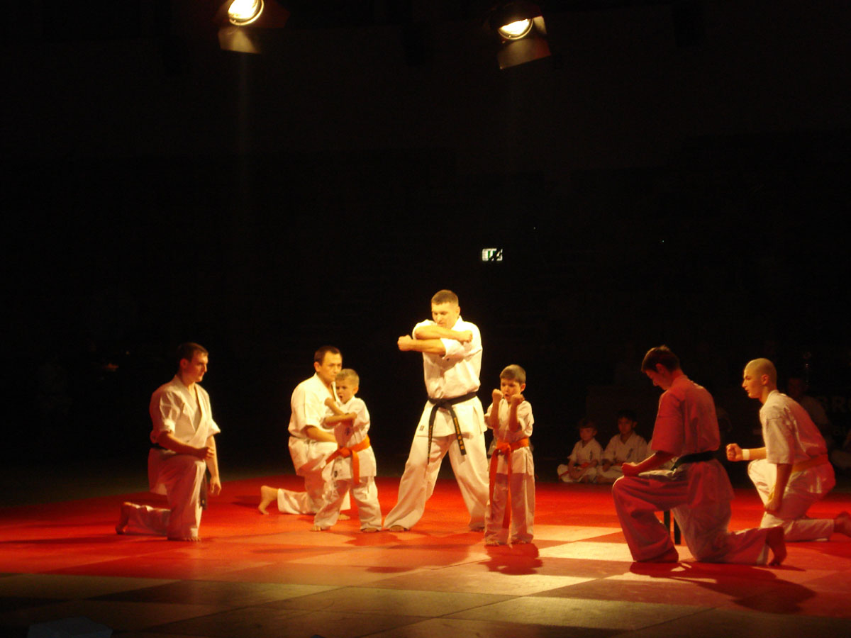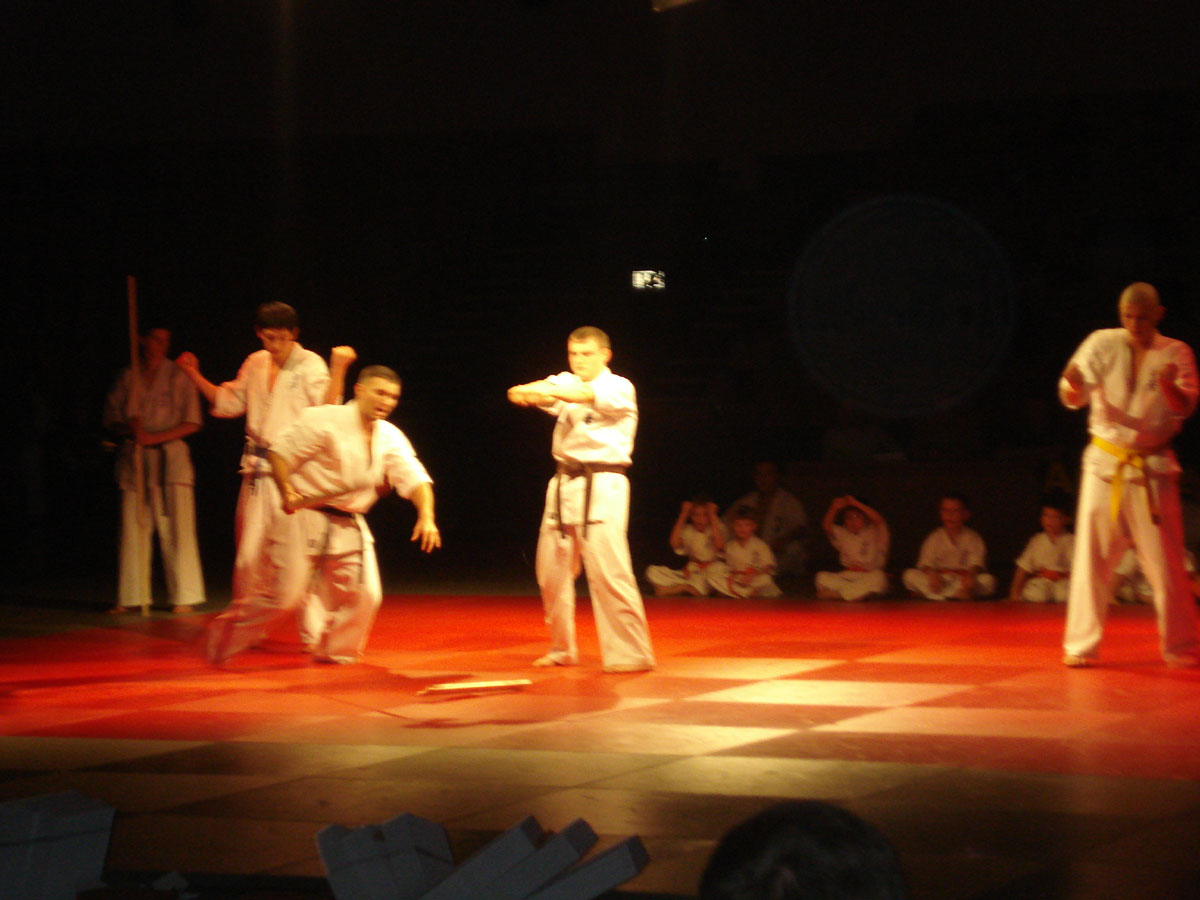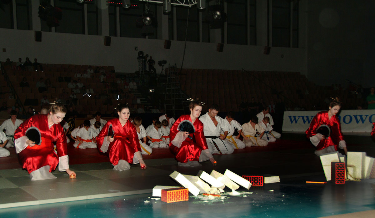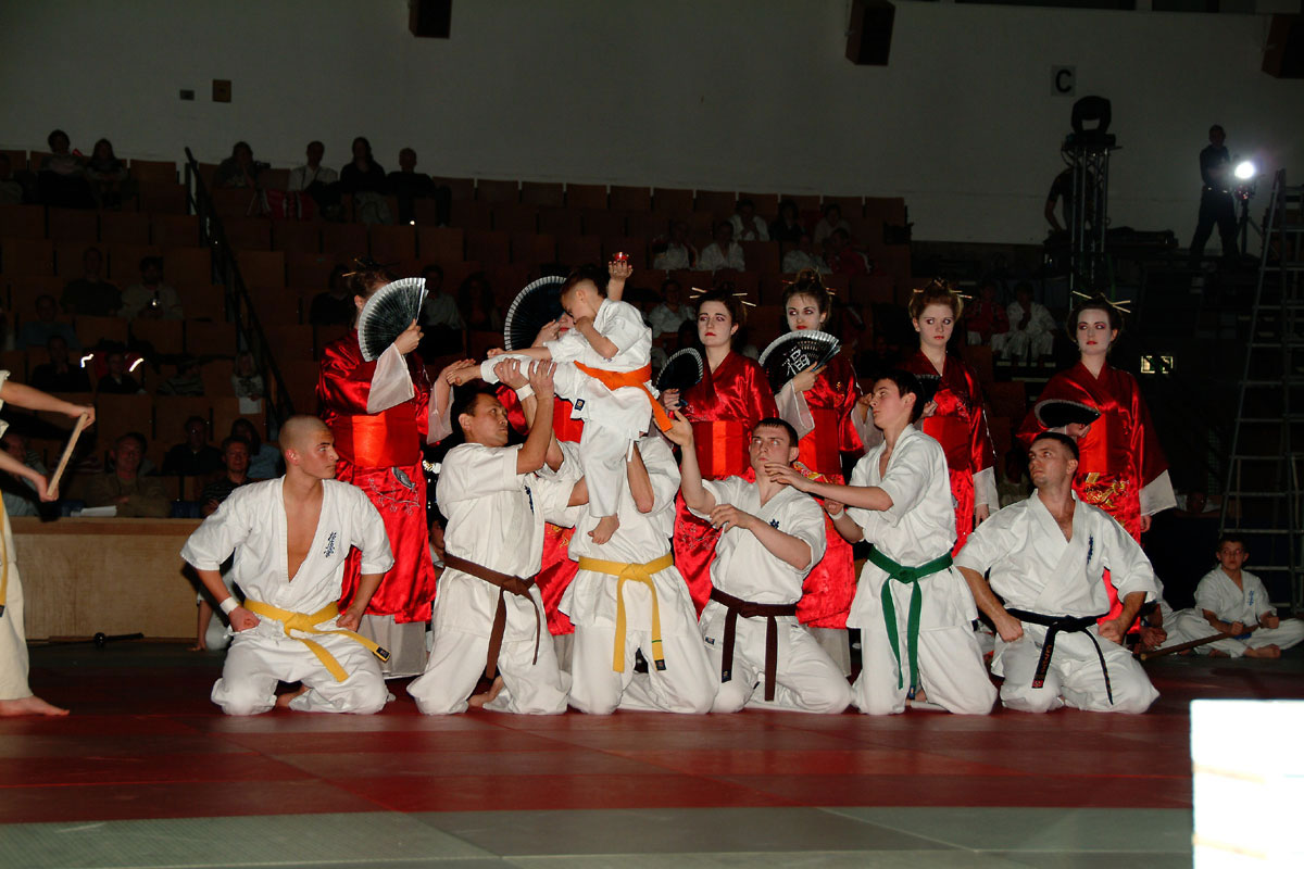 Девочки из родного нам клуба „Danzu“, под руководством Ирины Демановой, в роли японских Гейш вывели нашу команду на татами, где всё и началось: ката и работа в парах, ката с шестом и техника с японскими мечами, разбивание досок и бетонов, сальто с разбиванием доски в воздухе, замедленное шоу – стробоскоп и многое другое.
