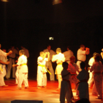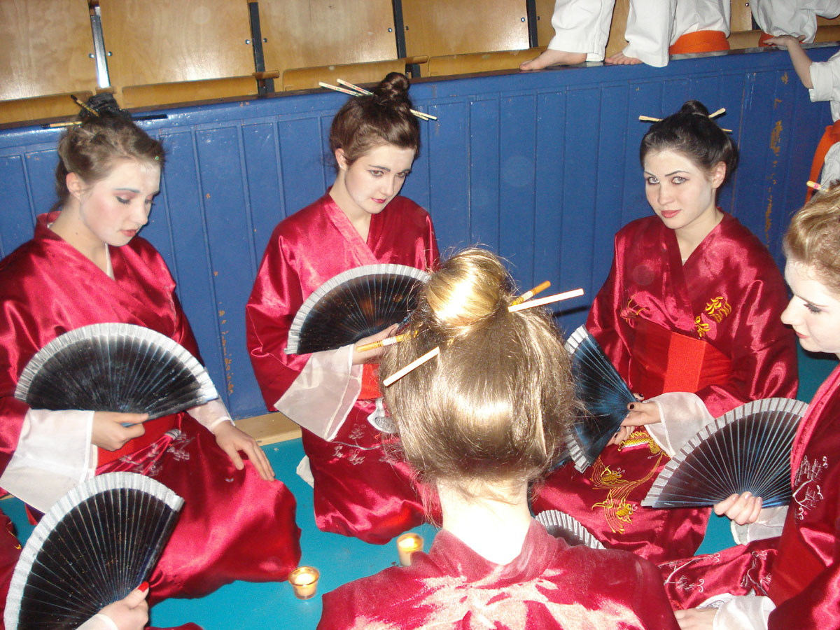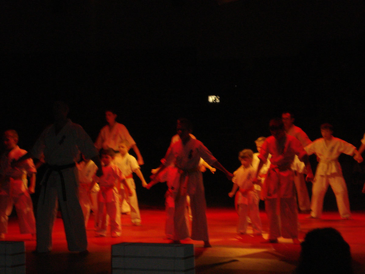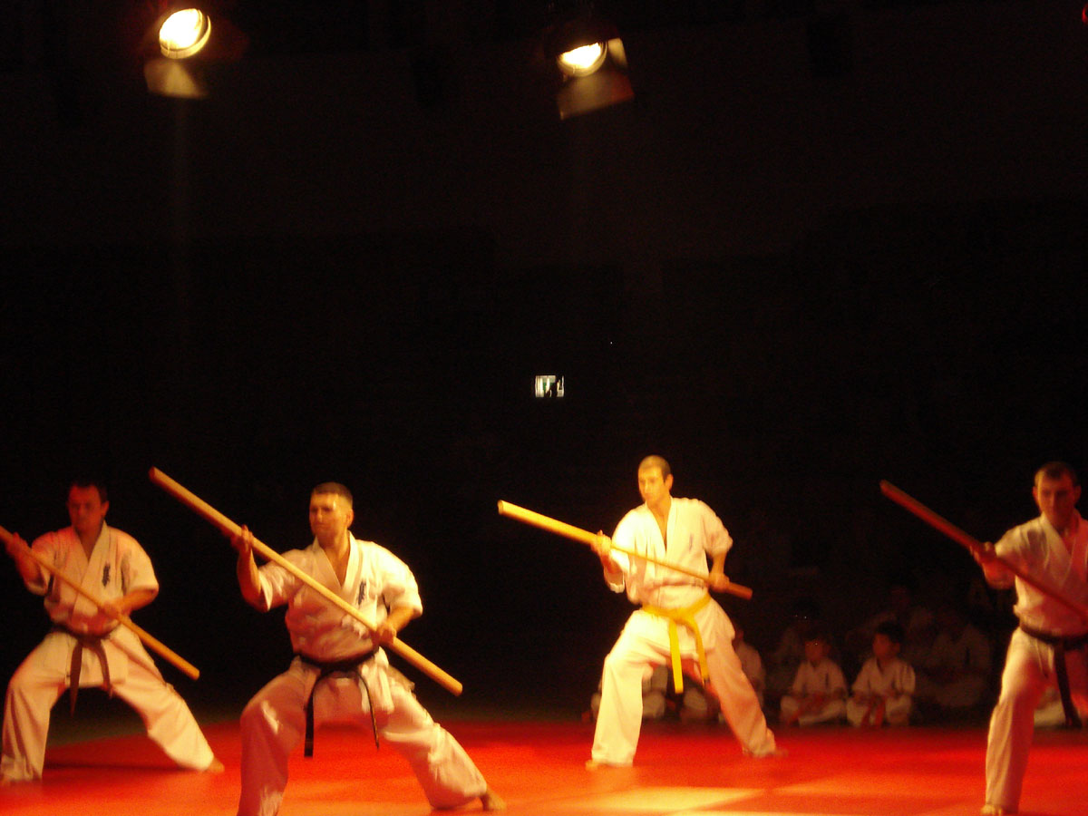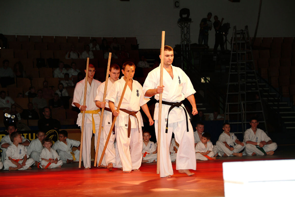 Девочки из родного нам клуба „Danzu“, под руководством Ирины Демановой, в роли японских Гейш вывели нашу команду на татами, где всё и началось: ката и работа в парах, ката с шестом и техника с японскими мечами, разбивание досок и бетонов, сальто с разбиванием доски в воздухе, замедленное шоу – стробоскоп и многое другое.
