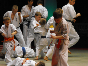 In den vergangenen Samstag hat unser Club am zweiten Budo-festival teilgenommen, das in Berlin ging. Obwohl wir eine Zeit (und wenn ehrlich – jenes und der Möglichkeit ganz nicht hatten haben), die gute „Schow“ vorzubereiten, wir doch den lautesten Beifall, nach Meinung der Eltern, die unserer Aktion anwesend sind, abgerissen. Bei uns war allen zehn Minuten, deshalb haben wir uns bemüht, in dieser Zeit dazuzukommen, alle vier Teile Karate Kyokushin vorzustellen: die Familie Demanov hat eines höchst Kata erfüllt, ganze Gruppe hat Kichon (die Stützpunkttechnik) und Kumite – den Kampf in verschiedenen Varianten demonstriert.
