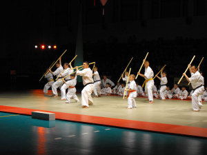 Die Neuerung in unserer Föderation – Kata mit “Bo“ (Sechster) hat das Interesse bei dem Publikum – von fünfjährigem Steven und Artur, bis zu am meisten älter – Bakyt und Sempai auch herbeigerufen, allen haben sich mit diesem Teil der Aktion zurechtgekommen. Dann haben zuerst die Kleinen, später die mittlere Gruppe und endlich – die am meisten älteren Leute abwechselnd „Temesivari“ – Bruchtest der festen Gegenstände erfüllt.
