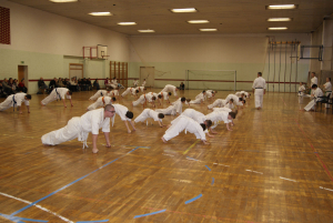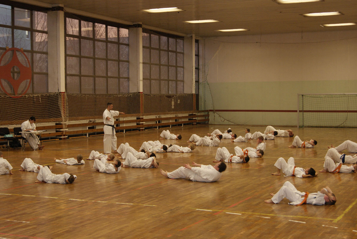 Сэнсей Роберт Шумков провел необычную тренировку с вариантами борьбы на полу и работы против разного оружия. Сэмпай Ирина устроила настоящий конкурс на лучшие иероглифы, где старшие бойцы определили 4-х победителей. Ну а после ночевки в родном Додзё в спальных мешках, все почувствовали себя настоящими „учи-деши“!