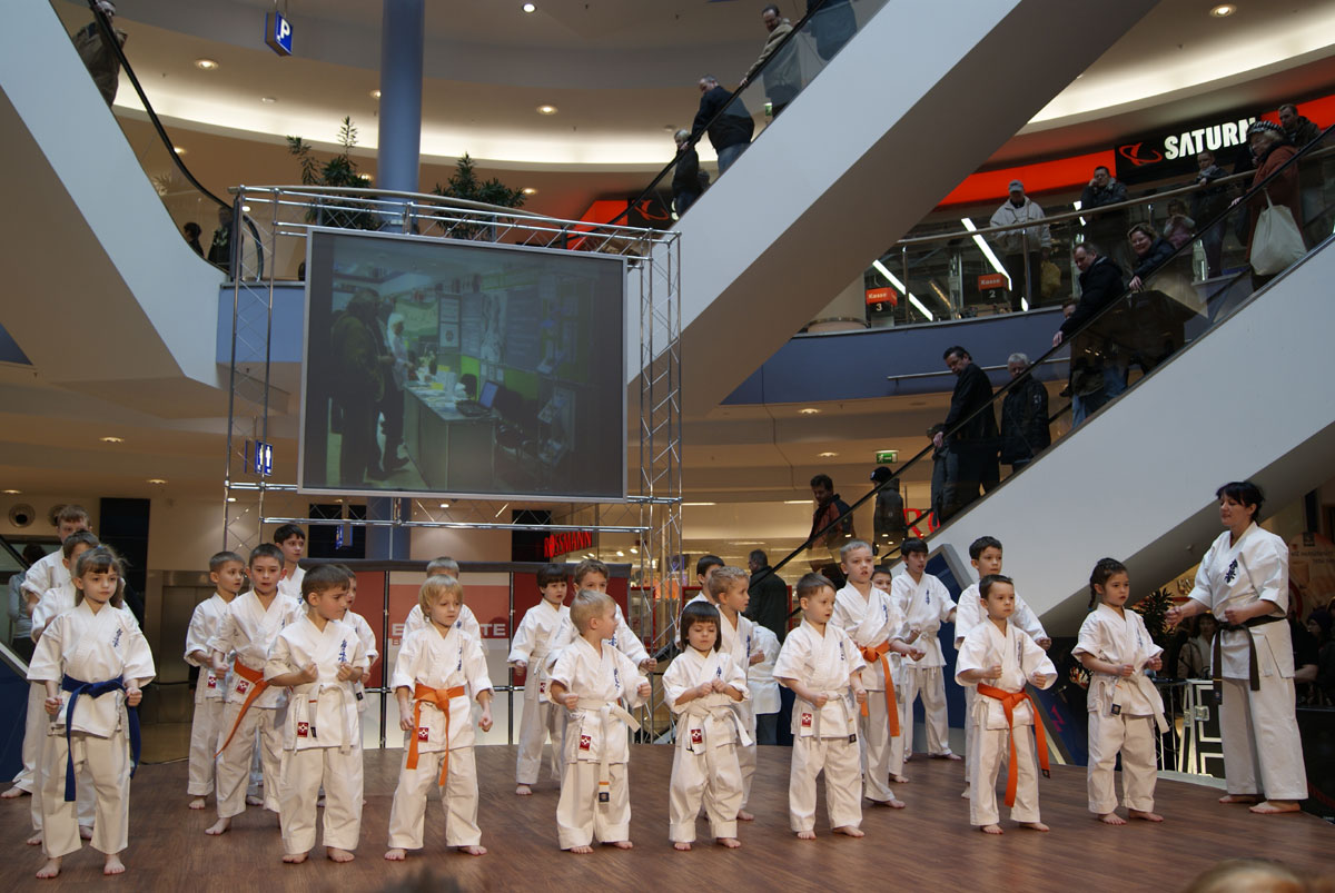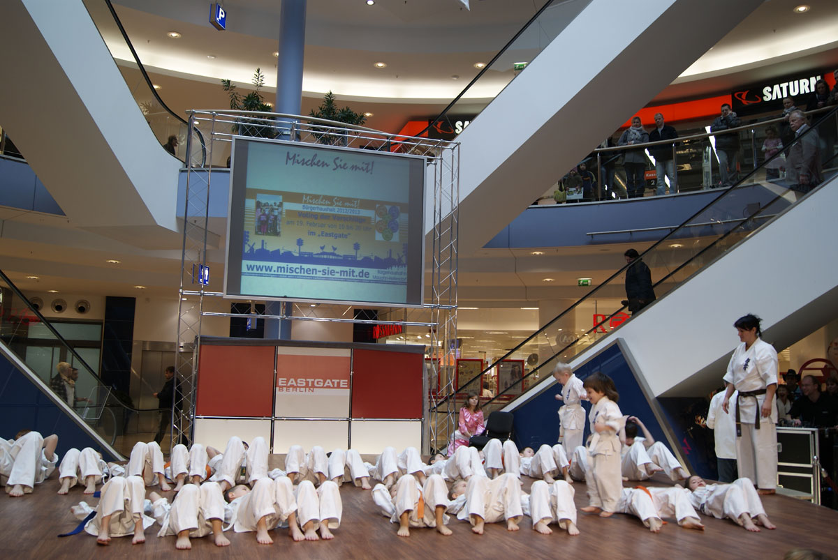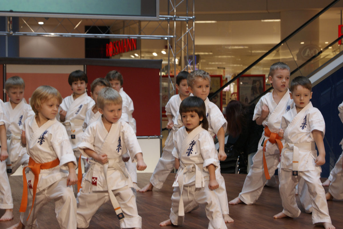 Unsere kleine neuangekommenen Kämpfer des Clubs, mit der Unterstützung zwei Gruppen Danzu, zum ersten Mal sind öffentlich in riesigem East Gate Center aufgetreten. Die Mädchen hatten eine Generalprobe vor unserer Deutsche Meisterschaft, und bei den Buben aus Dankezu ist sehr kompliziert, der gegenwärtige Test – allen richtig zu erfüllen, wenn dich so viel Zuschauen sieht! Aber sie sind zurechtgekommen und haben die gute Tradition unseres Clubs – immer fortgesetzt, das Publikum zu treffen! Sempai Irina hat das interessante Programm, das aus Kichon besteht, die Kata, der Arbeit in Paaren und etwas unerwartet für unsere Zuschauer vorbereitet. Es war sehr angenehm, nass von der Freude des Auges der Mütter unserer Kleinen … zu sehen.