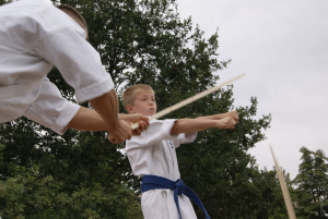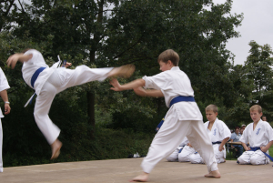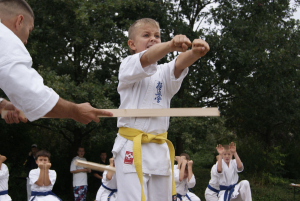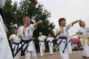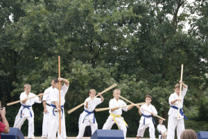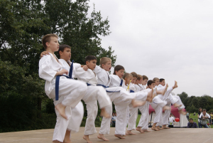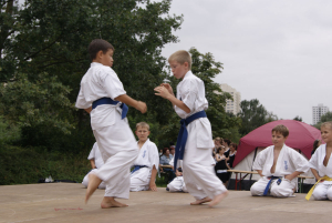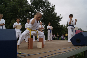 Самые „крутые“ малыши, исключительно сини пояса и один желтый решили сами подготовить выступление на очередном уличном празднике в нашем городе. Всё выступление было очень интересным и не похожим на те, что они создавали раньше. Особенно всех впечатлило Тамэсивари – когда все до одного справились с разбиванием досок и бетонов. Ну а ломание палок об руки, живот и ноги таких малышей ввело зрителей даже в замешательство!