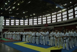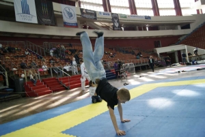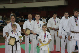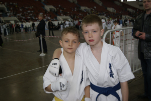 Каратэ киокушинкай был одним из 30-и видов единоборств, представленных на этой самой Олимпиаде. Мы выступали все три дня Олимпиады – 27-го апреля в соревнованиях по ката: Стивен Деманов сражался в разделе индивидуального ката, а команда из трех человек – Стивена Деманова, Никиты Бауэра и Алексея Деманова в разделе командное ката. Стивен стал ЧЕМПИОНОМ, а наша команда заняла втрое место!!!