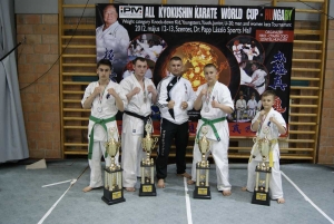 In einer kleinen Stadt Sentesch, die 150 km von Budapescht entfernt ist, fand am 12-13.05.2012 Weltcup der Honkyokushinorganisation statt. In der Regel sind dort die Kopfschläge im Vollkontakt verboten, was unsere Besonderheit ist. Trotz dieser Regel haben wir uns entschieden doch an dieser große Veranstaltung zu beteiligen. Aus eigener Erfahrung wussten unsere Kämpfer die Art und Weise der Schiedsrichter in Ungarn und waren nur auf Wasari und Ippon ausgerichtet. Denn sonst würden die ungarische Kämpfer immer zu Siegern erklärt. Über Weltcup: insgesamt haben an dem Turnier ca. 400 Kämpfer aus 12 verschiedenen Ländern teilgenommen. Dazu gehören auch sehr starke Kämpfer aus Moskau, Ivanovo, aus der Ukraine, Schweden, Holland und Slowakei. Von der Organisation insgesamt hätte man was Besseres erwartet. Die Pokale waren aber ohne Frage zum Stauen.