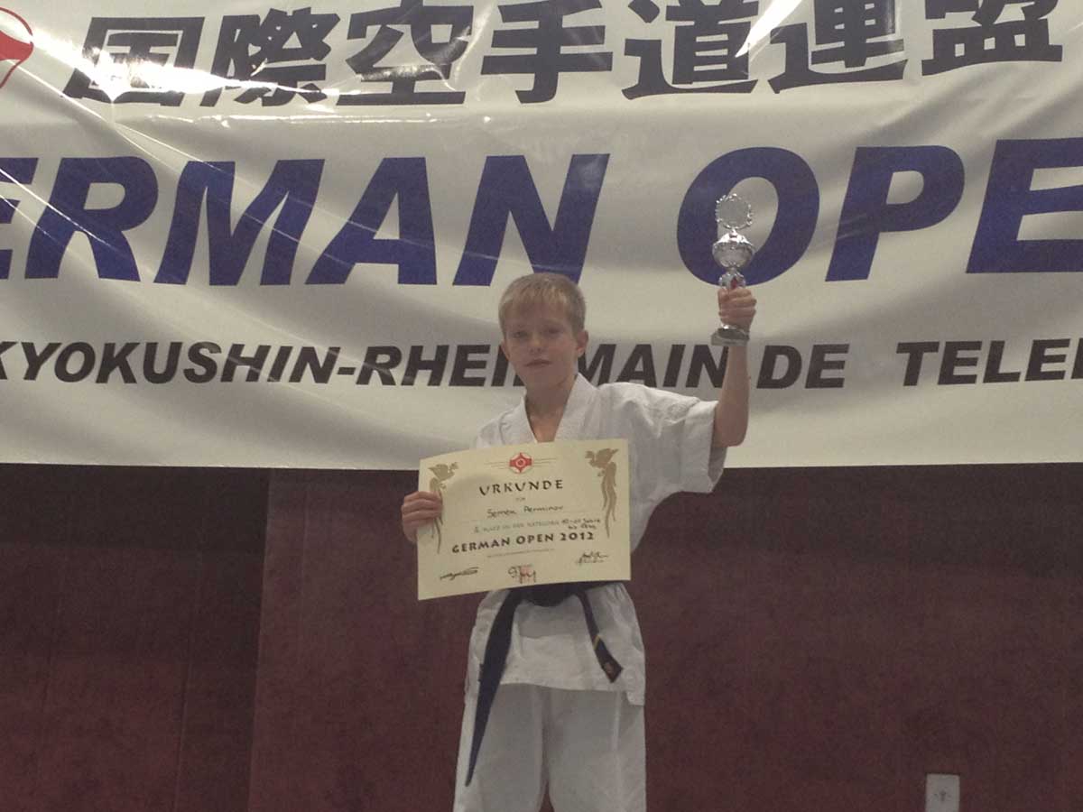 У Семёна было тоже 5 бойцов и он дрался дополнительный бой. Семён подрался как настоящий маленький „профи“. На первый бой вышел очень уверенно, он бьёт левой ногой маваши и попадает чётко бойцу в голову и зарабатывает вазари. Соперник пропустив в голову решил нашему Семёну надавать в голову руками и без задней мысли он бил прямой цуки в голову. За что боец получает просто чуй. Семён терпя, дерётся дальше и соперник опять нагло бьёт в челюсть Семёну, за что после этого соперника дисквалифицировали. Семён вышел в полуфинал. Он выходит против жёлтого пояса (русский-немец). Семён уверено пробивает соперника в живот , что соперник больше не может встать и зарабатывает иппон. Выходит в финал против (русского-немца) его соперник начинал очень жёстко и быстро бить Семёна, Семён взрывается на уширо-маваши и по падает сопернику прямо в голову. Боец отказывается дальше драться и Семён зарабатывает иппон. Он становится чемпионом Германии.