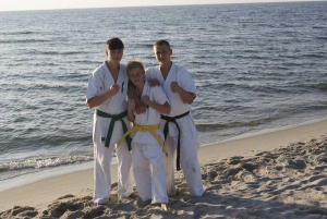Zum ersten Mal sind wir in unseren Lieblings Baltijsk nicht während des Trainingsprozesses gekommen. Aber, so wie wir sind, nicht gab es kein totale Pause, sondern ein kleines Programm: Wander, Jogging und Lagerfeuerabende, und auch das alte Spiel „Zarnitsa“, kamen in unsere Routine. Zu diesem Zeitpunkt feierte die statt ihren „Geburtstag“ und somit konnten wir eine Parade der Schiffstechnik sehen – Danke an die Mama Gala! Der Höhepunkt des Camps war es, am Festival der Kampfkunst und Sport , die Tatiana Marushevska organisierte teilzunehmen.