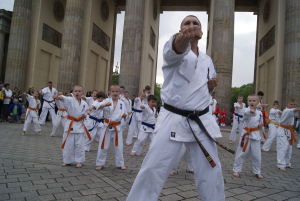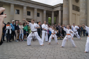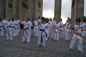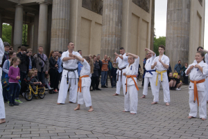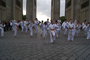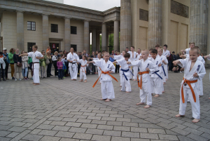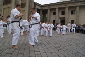 Наша школа решила заявить о каратэ киокушин вобщем и о наших клубах Dankezu и Danzu, которые вот уже 10 лет идут по пути киокушин каратэ в Германии по-своему: мы сделали небольшое показательное выступление прямо на центральной площади Берлина у Бранденбургских Ворот!