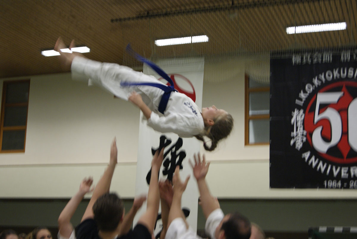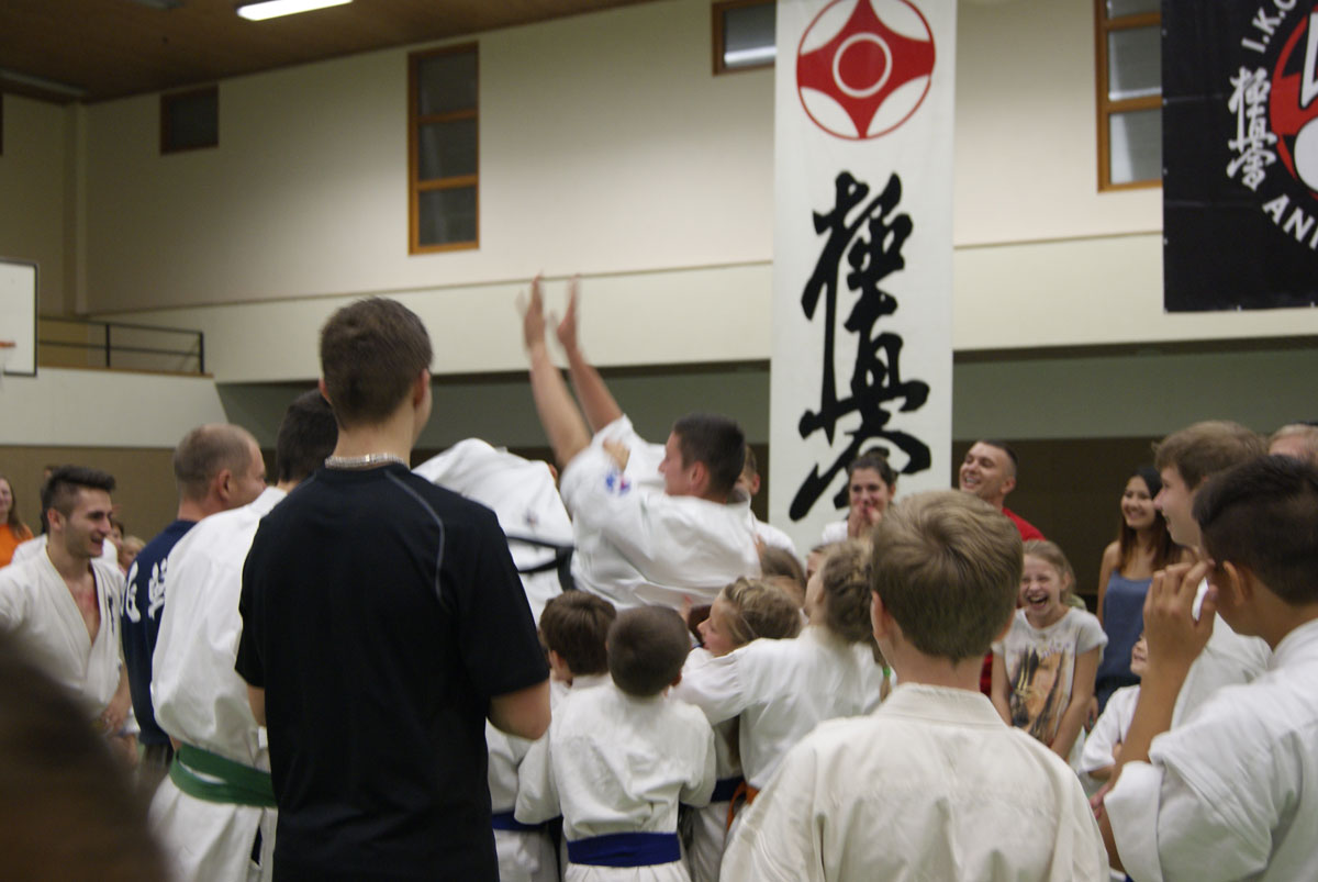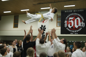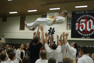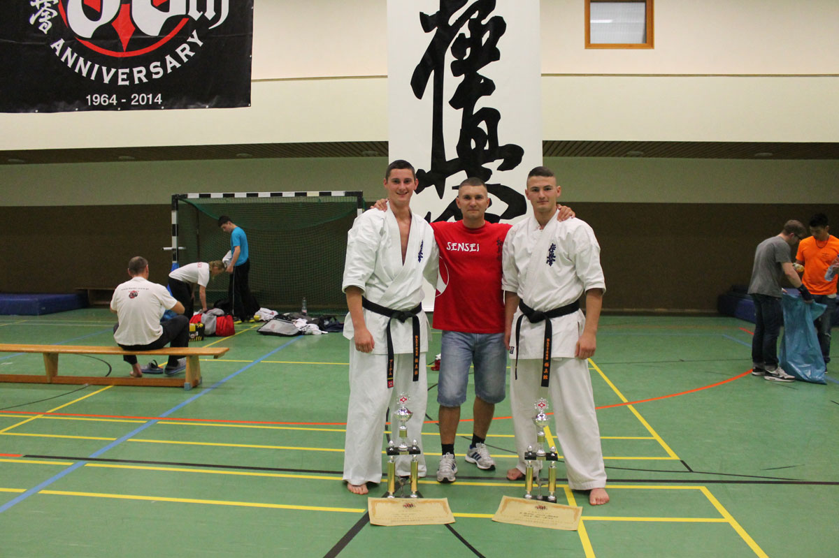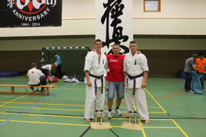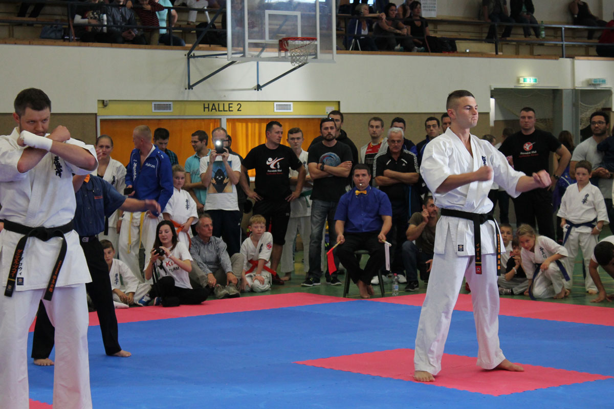 Рекорд этого выступления начался с количества участников нашей школы – 39 бойцов решили проверить свои силы одновременно на двух татами небольшого городка Ведель, что всего в 300 км. от Берлина. Организация турнира, включая красивые кубки победителям и приветливое отношение ко всем гостям, нас приятно удивила – наш друг Сэмпай Аксель Хинц, который посещает наши турниры и лагеря, действительно первый из IKO Германии, кто справился с этой задачей на ХОРОШО! Жаль, что начало турнира затянули по прежнему на 2 часа, а то вообще был бы прецедент.
