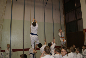 Ровно 187 человек (спасибо спискам и фото) приняли участие в качестве спортсменов, судей, зрителей и „случайных прохожих“ в нашей традиционной последней тренировке года! В этот раз мы не пробивали 2015 раз какие-нибудь удары, мы разделились на 9 групп и за 4 часа прошли 9 необычных станций, на которых нужно было продемонстрировать все физические качества, известные на сегодня…
