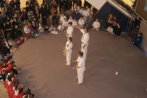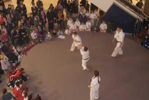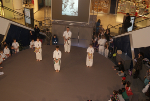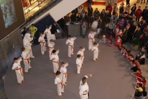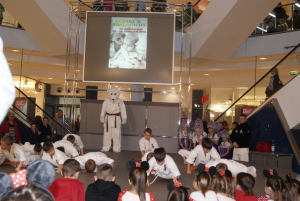 За две недели до нашего чемпионата Германии мы выступили на сцене самого большого торгового центра в восточной части Берлина – East Gate. Самые младшие ребята, которые в этом сезоне только начали свой путь каратэ приготовили выступление с берлинским медведем, которого они за пять минут на сцене обучили кихону! Сэмпай Ирина в очередной раз придумала что-то необычное и порадовала всех зрителей успехами своих малышей. Открывали выступления самые маленькие по возрасту малышки из Danzu – трехлетние девочки, наряду с основной группой малышек показали себя на сцене как „профи“ – в любом случае, аплодисменты они сорвали настоящие!