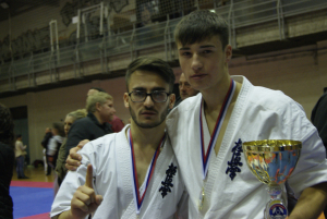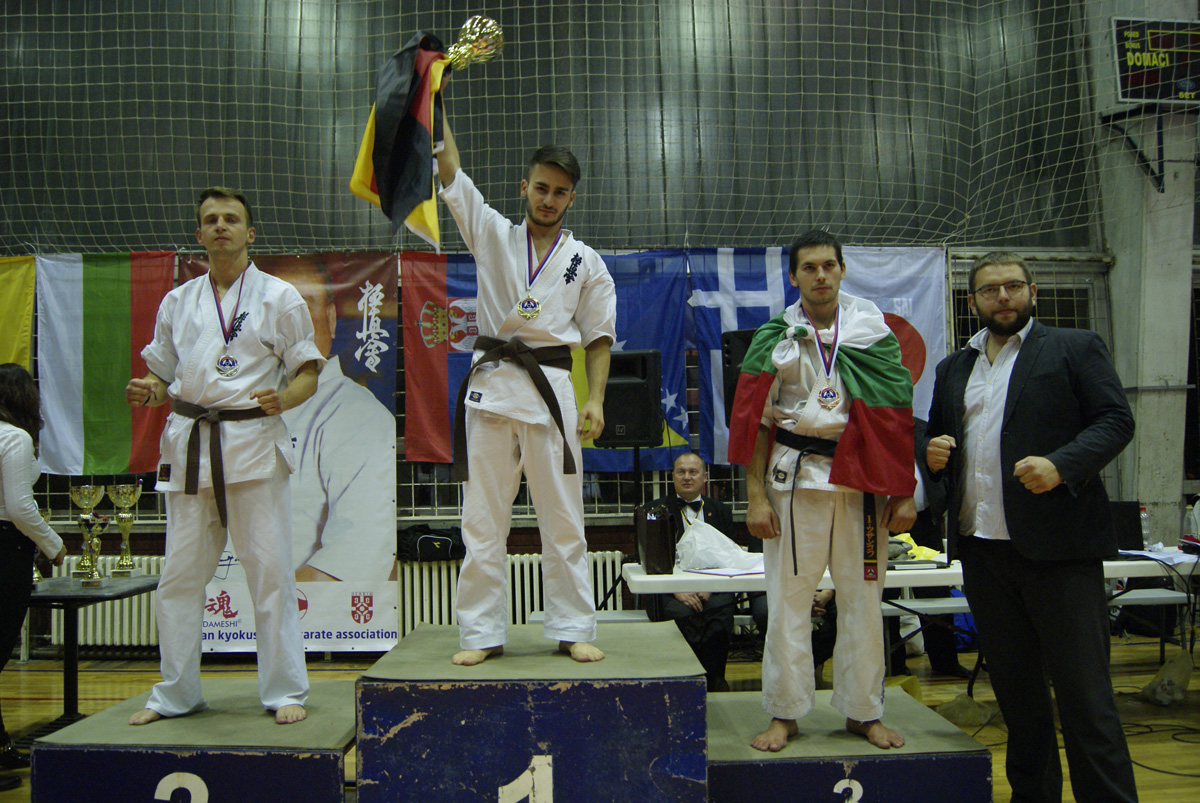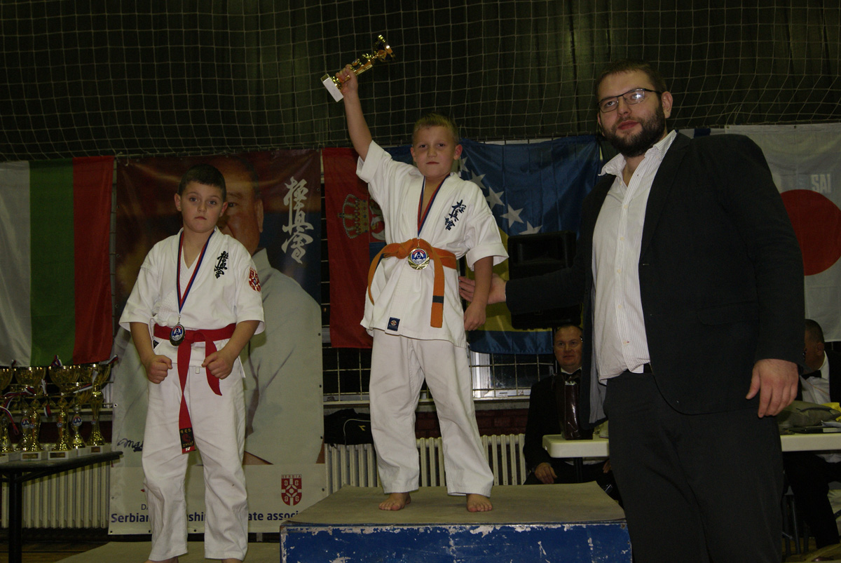 Стивен Деманов провел два боя до финала – первый выиграл на иппон на второй секунде боя, а второй в первом же времени убедил судей в своем превосходстве. В финале с оценкой вазари он выиграл Павла, став чемпионом Сербии. Денис Соколик по своему году рождения оказался в категории юниоров, где ему просто не с кем было драться: первый соперник отказался от боя через 30 секунд после начала, а в финале он просто „сломал“ соперника из Болгарии на иппон. Денис с этого года начинает сражаться во взрослой категории и этот турнир был хорошим переходом. Не могу не отметить романтичный поступок девушки Дениса – Лоры Димовой, которая не просто приехали из Болгарии поддержать своего любимого, но и сразу после финального боя вручила ему свой „именной“ кубок!
