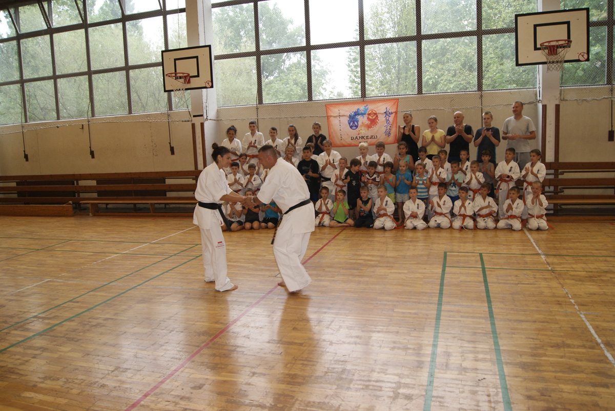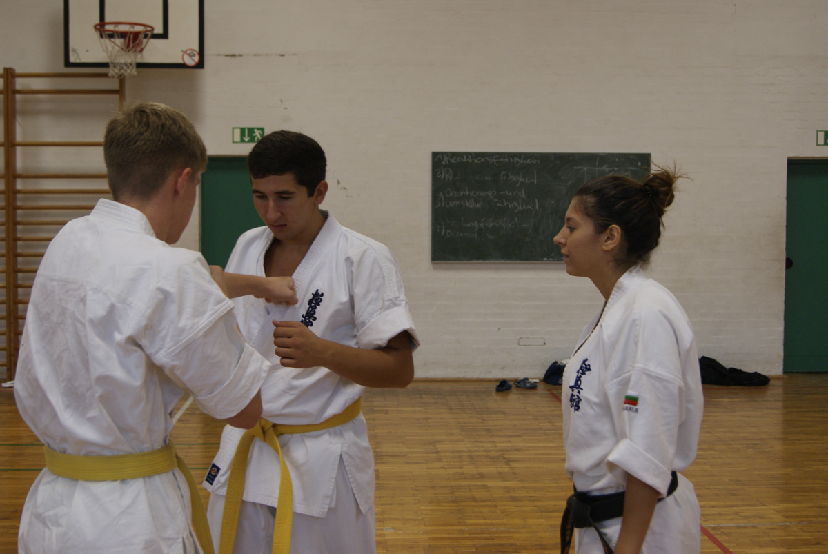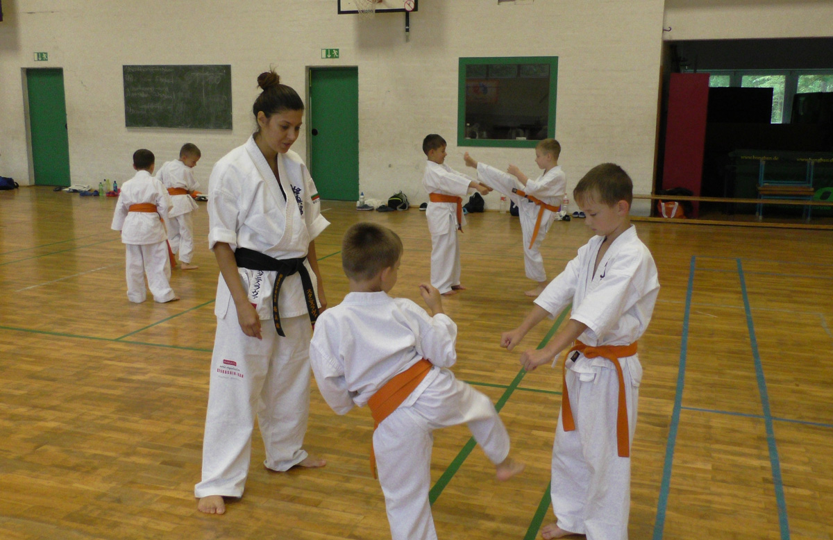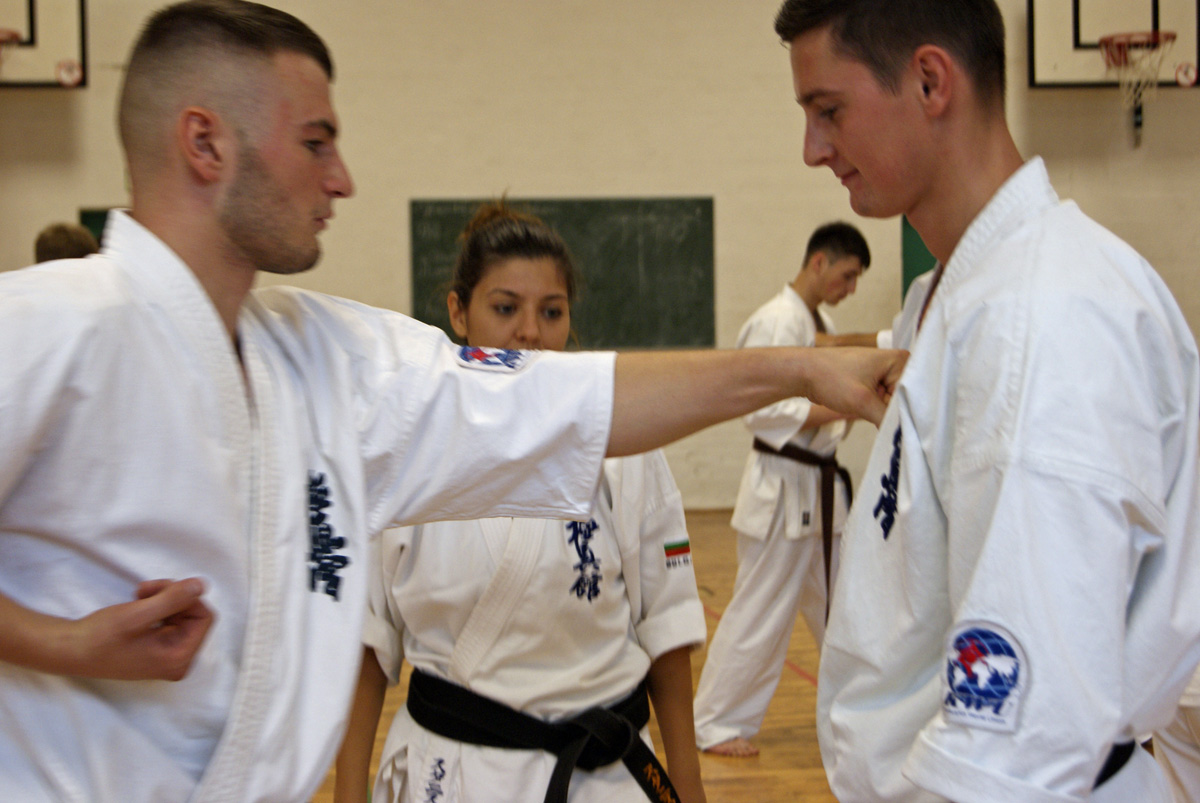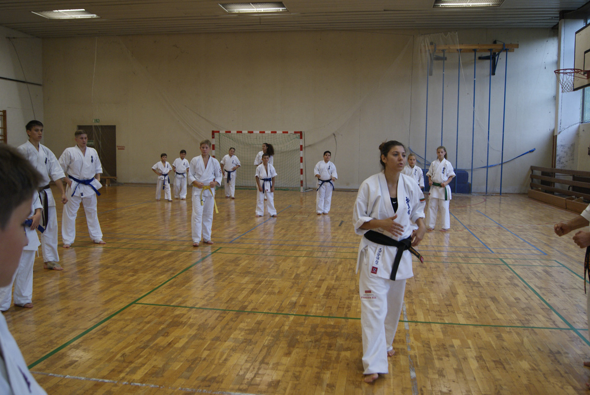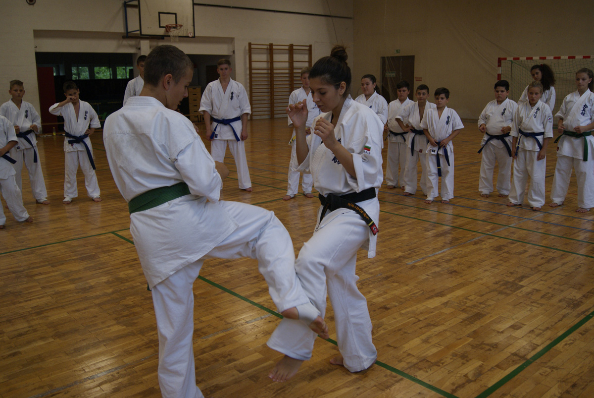 Нам очень повезло – красивейшая девушка Болгарии, сочетающая в себе необычайную грацию с настоящей киокушиновской силой, провела сразу два семинара в нашем Додзё! В группе новичков и оранжевых поясов Станислава поделилась методикой улучшения растяжки, как главного физического качества юных бойцов.