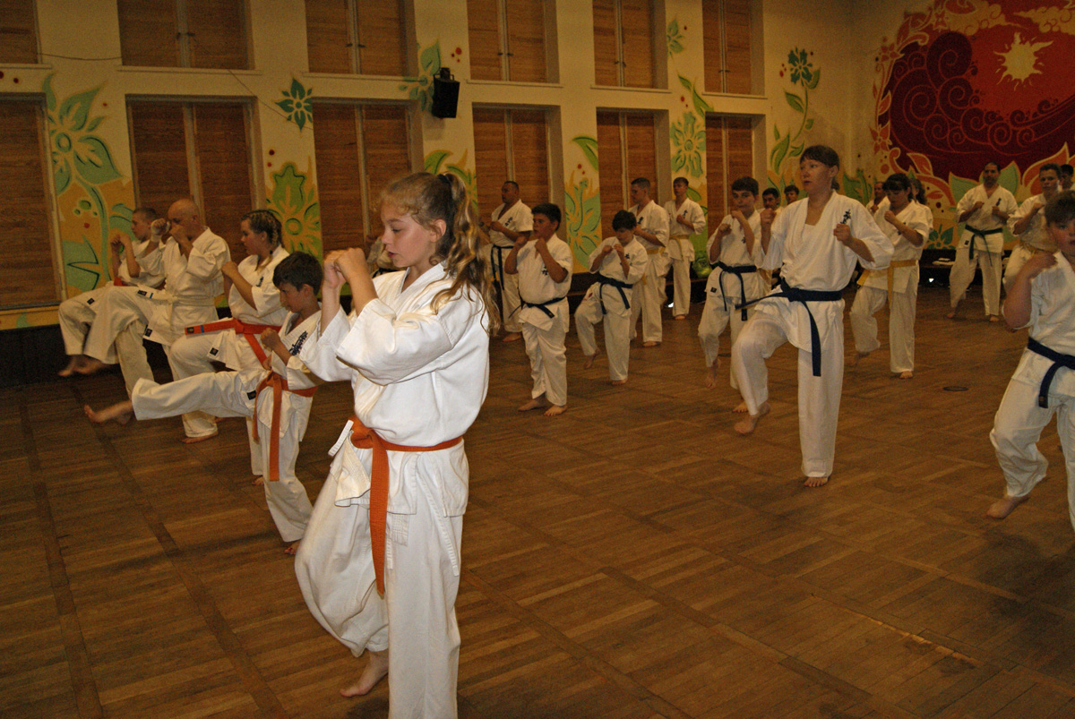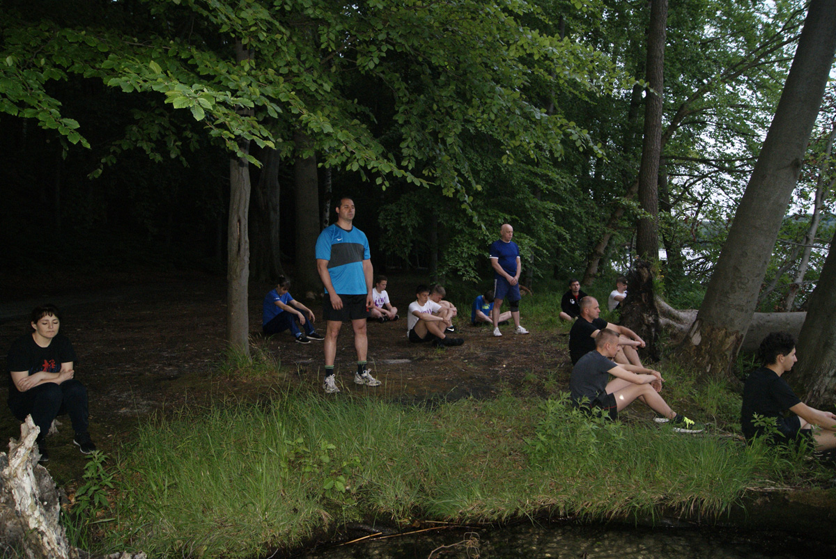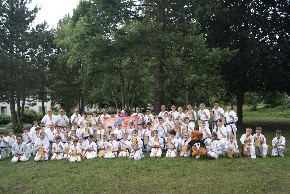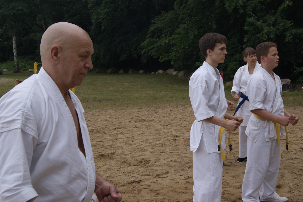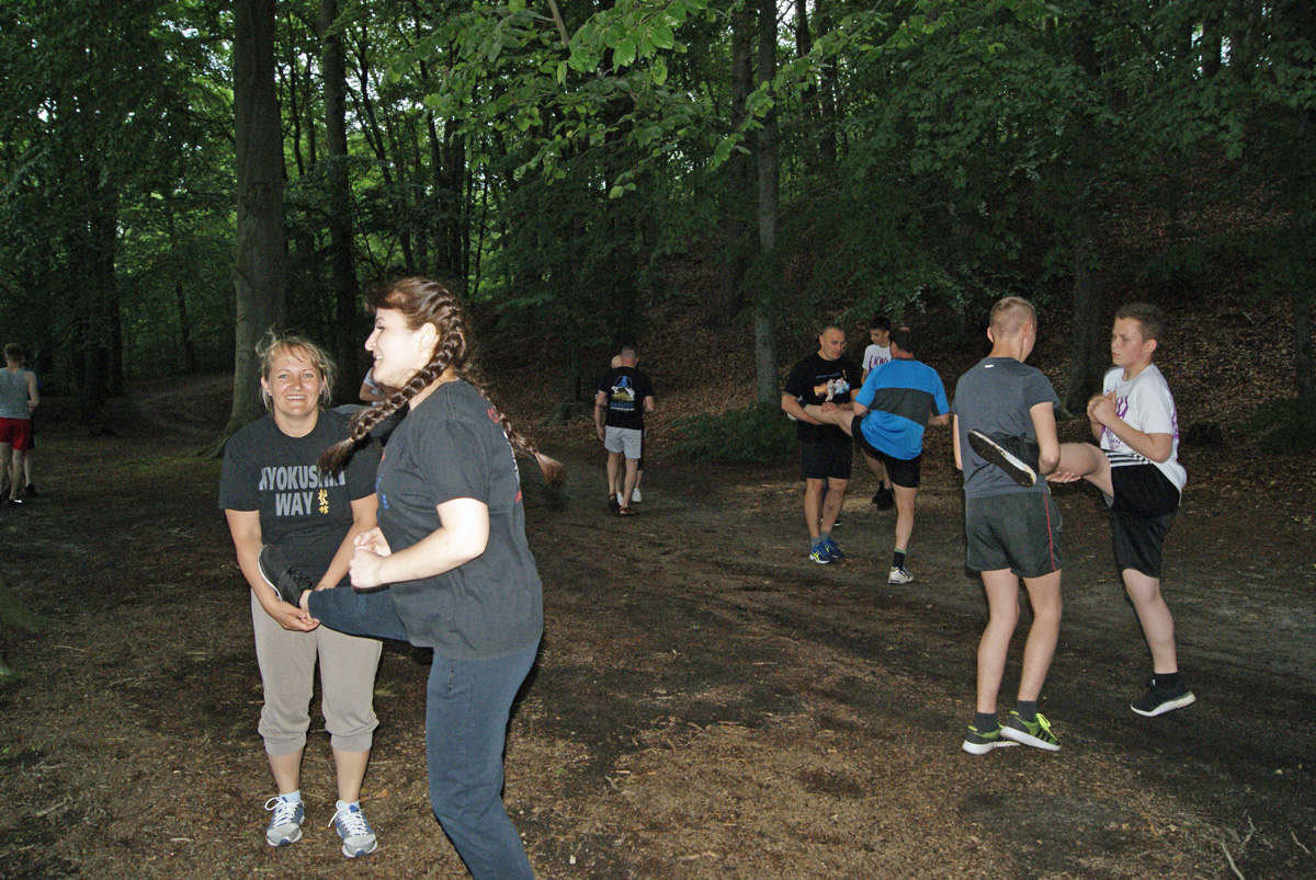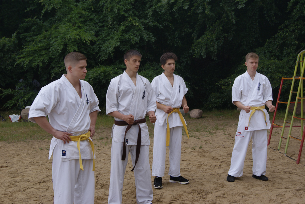 Есть два самых главных с точки зрения нашей организации мероприятий в году – наши первенства и чемпионаты Европы, и, конечно же заключительный летний лагерь школы. В этом году мы приняли решение не приглашать никого из иностранных тренеров и наставников, решили справиться своими силами, благо было чем удивить наших учеников. В очередной раз именно во время нашего лагеря погода проверяла нас на прочность – ливней не было, но моросящий дождь плохо поднимал настроение перед очередной тренировкой. Мы успели за полных три дня всё – и выучить новое ката, и пройти испытания экстремально-кондиционными тренировками, и победить страх темноты (малыши), и провести ночную тренировку, переходящую в ночной экзамен, и накупаться в прохладном озере, и, и, и.