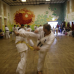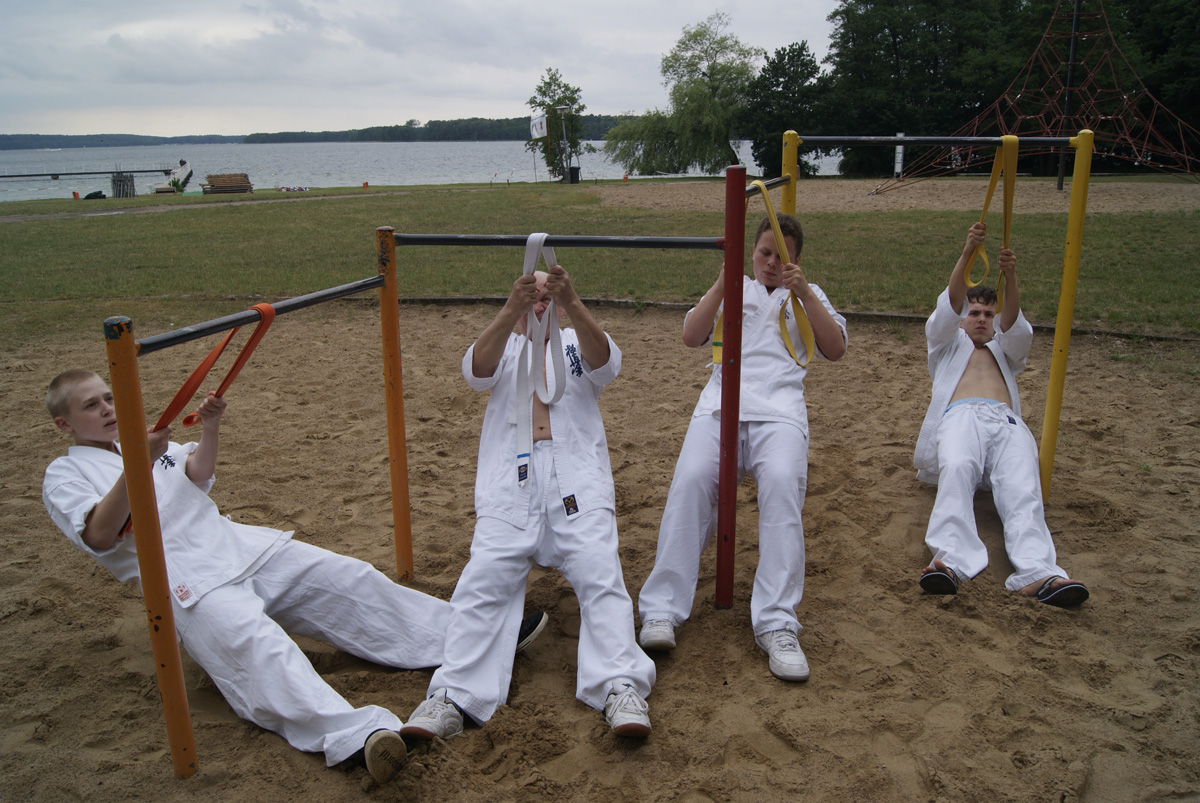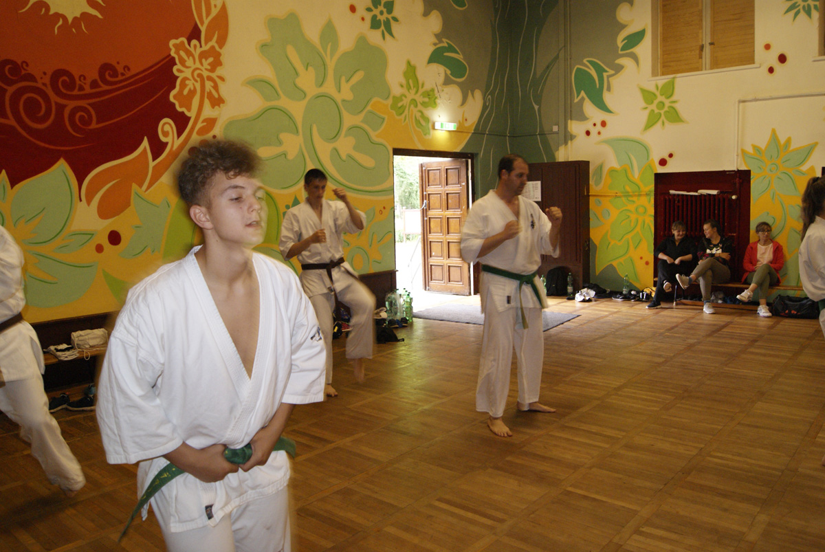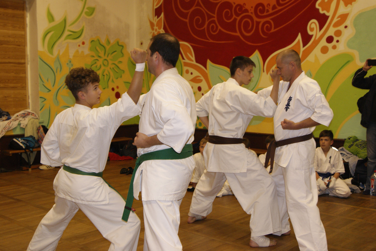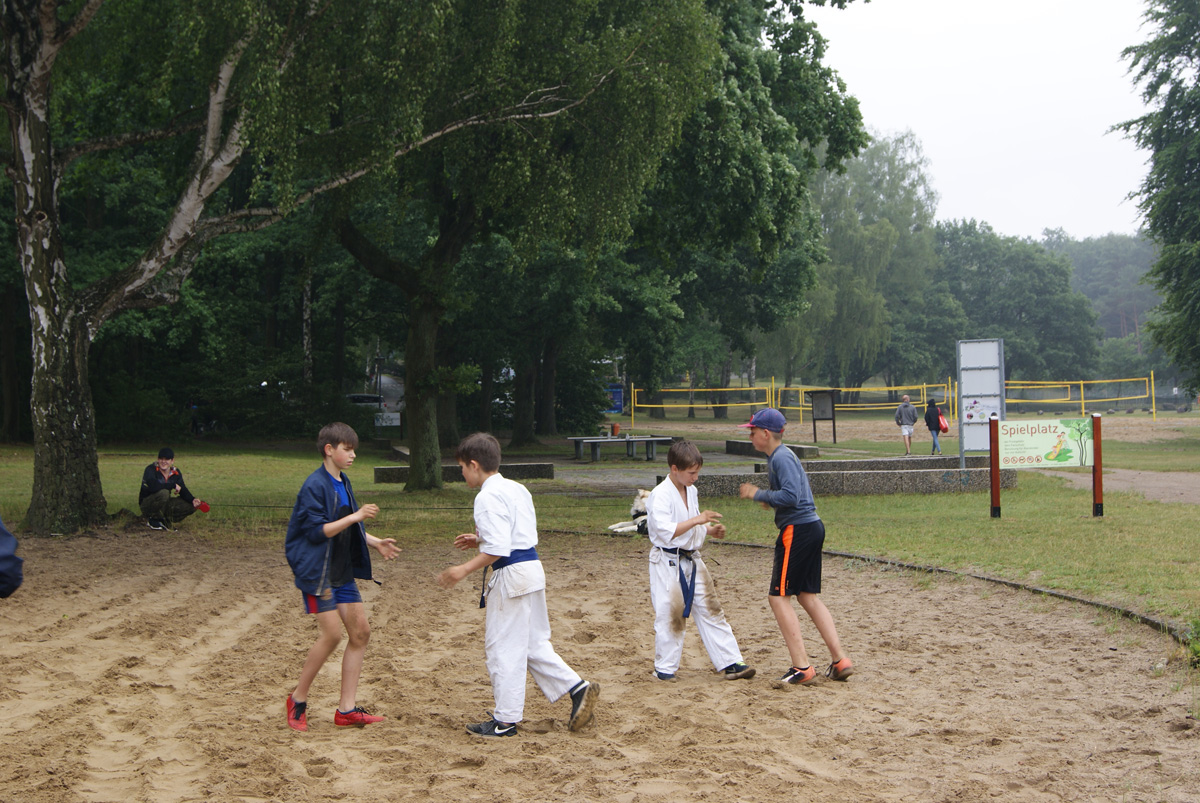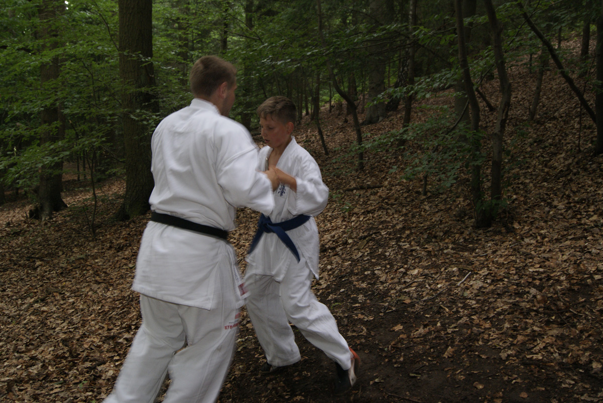 Есть два самых главных с точки зрения нашей организации мероприятий в году – наши первенства и чемпионаты Европы, и, конечно же заключительный летний лагерь школы. В этом году мы приняли решение не приглашать никого из иностранных тренеров и наставников, решили справиться своими силами, благо было чем удивить наших учеников. В очередной раз именно во время нашего лагеря погода проверяла нас на прочность – ливней не было, но моросящий дождь плохо поднимал настроение перед очередной тренировкой. Мы успели за полных три дня всё – и выучить новое ката, и пройти испытания экстремально-кондиционными тренировками, и победить страх темноты (малыши), и провести ночную тренировку, переходящую в ночной экзамен, и накупаться в прохладном озере, и, и, и.