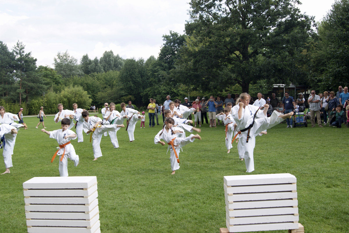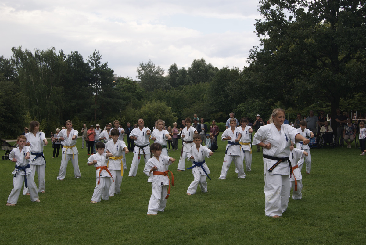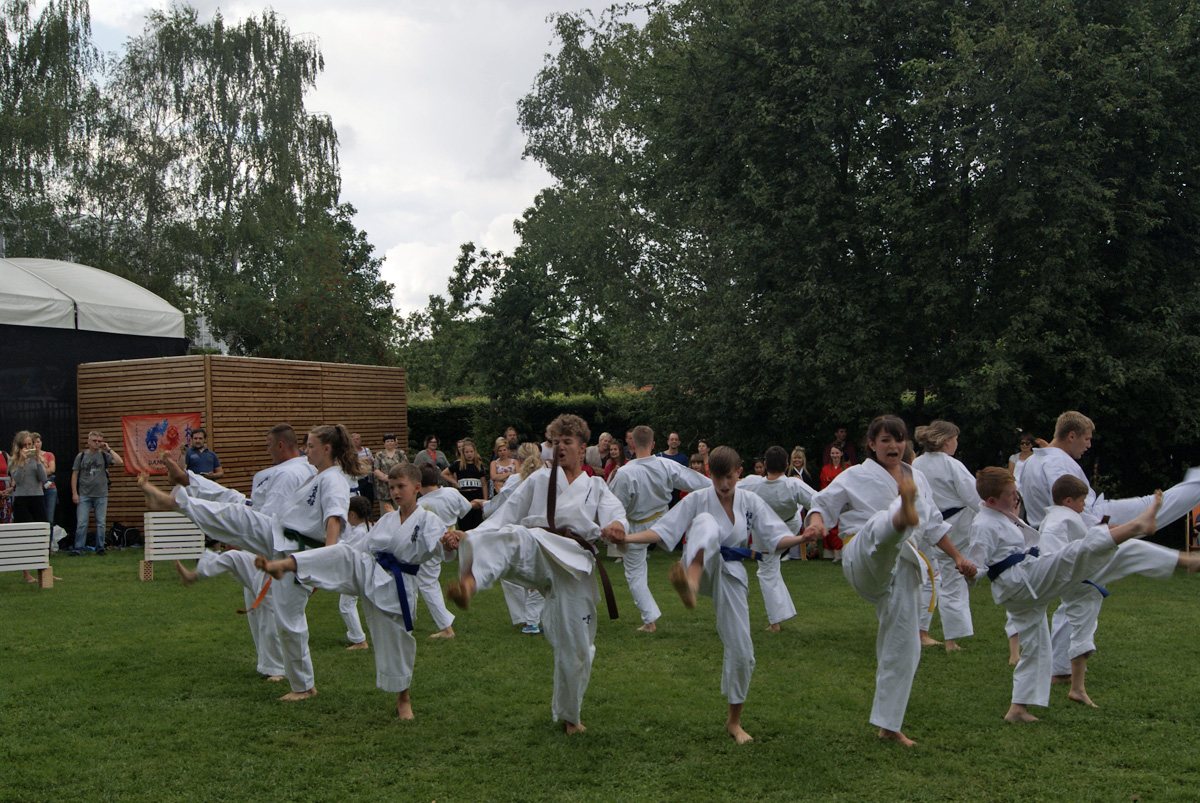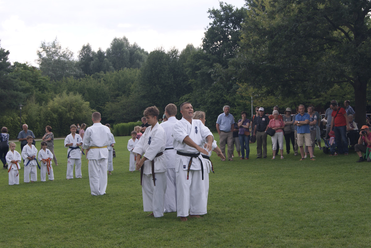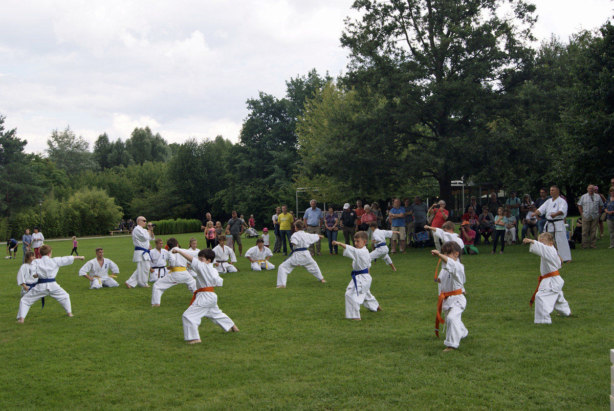 Самый красивый парк нашего города – „Gärten der Welt“ вместил в себя в эту субботу „красивый“ в плане организации праздник, самую „красивую“ в плане солнца и тепла погоду в этом месяце, и самых „красивых“ в плане техники бойцов школы DANKEZU! А когда у нас такое сочетание, то и выступление можно смело назвать „красивейшим“ в уходящем сезоне: все техники выполнены безукоризненно, разные ката сплелись в один рисунок, боевая техника произвела впечатление даже на охрану, ну а сломано было всего – восемь досок, две двухметровые палки, один арбуз и 36 (!) блоков!