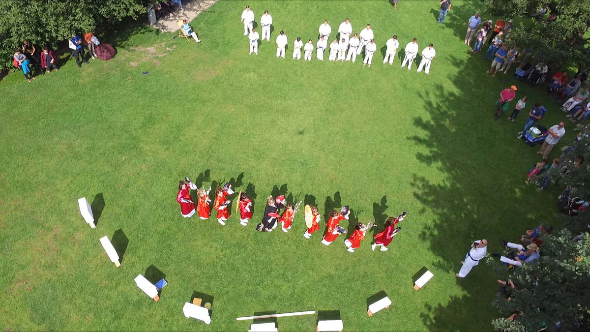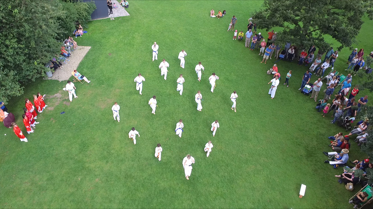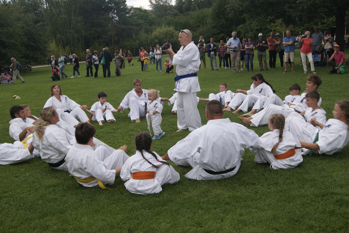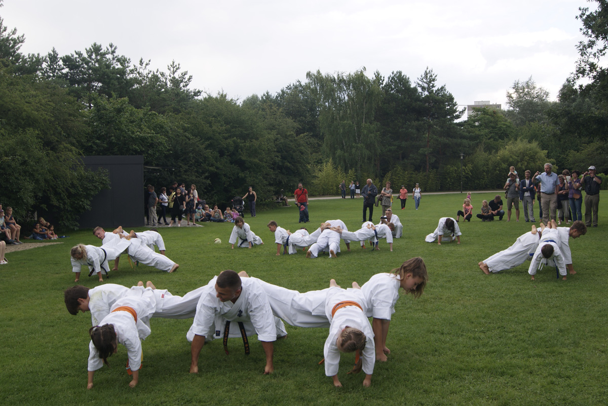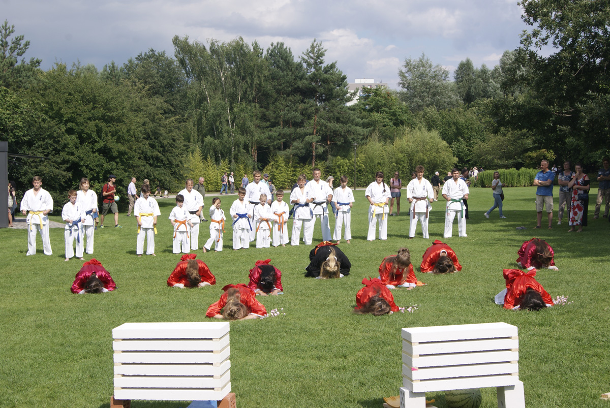 Самый красивый парк нашего города – „Gärten der Welt“ вместил в себя в эту субботу „красивый“ в плане организации праздник, самую „красивую“ в плане солнца и тепла погоду в этом месяце, и самых „красивых“ в плане техники бойцов школы DANKEZU! А когда у нас такое сочетание, то и выступление можно смело назвать „красивейшим“ в уходящем сезоне: все техники выполнены безукоризненно, разные ката сплелись в один рисунок, боевая техника произвела впечатление даже на охрану, ну а сломано было всего – восемь досок, две двухметровые палки, один арбуз и 36 (!) блоков!