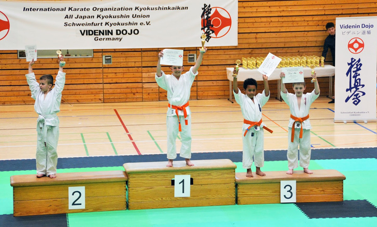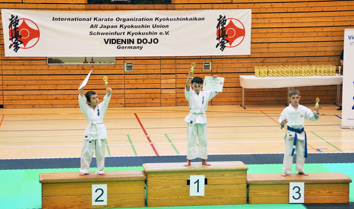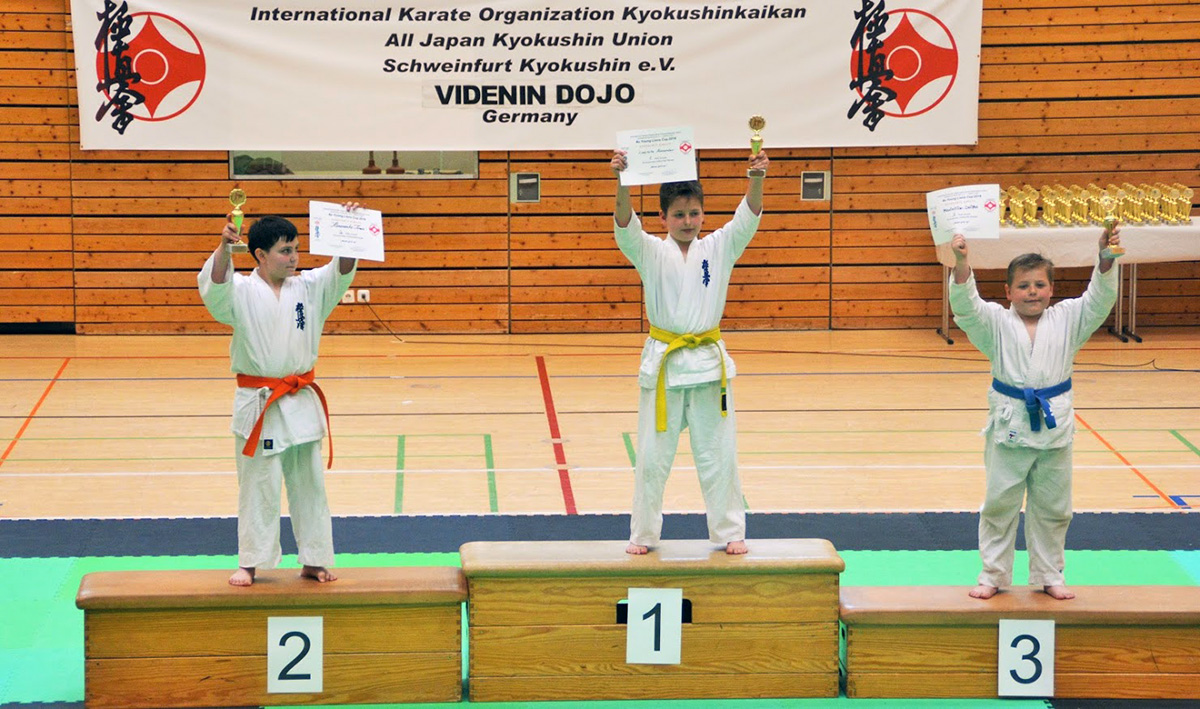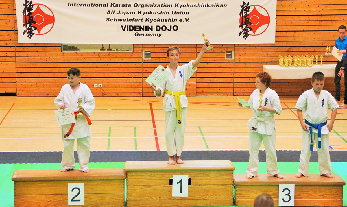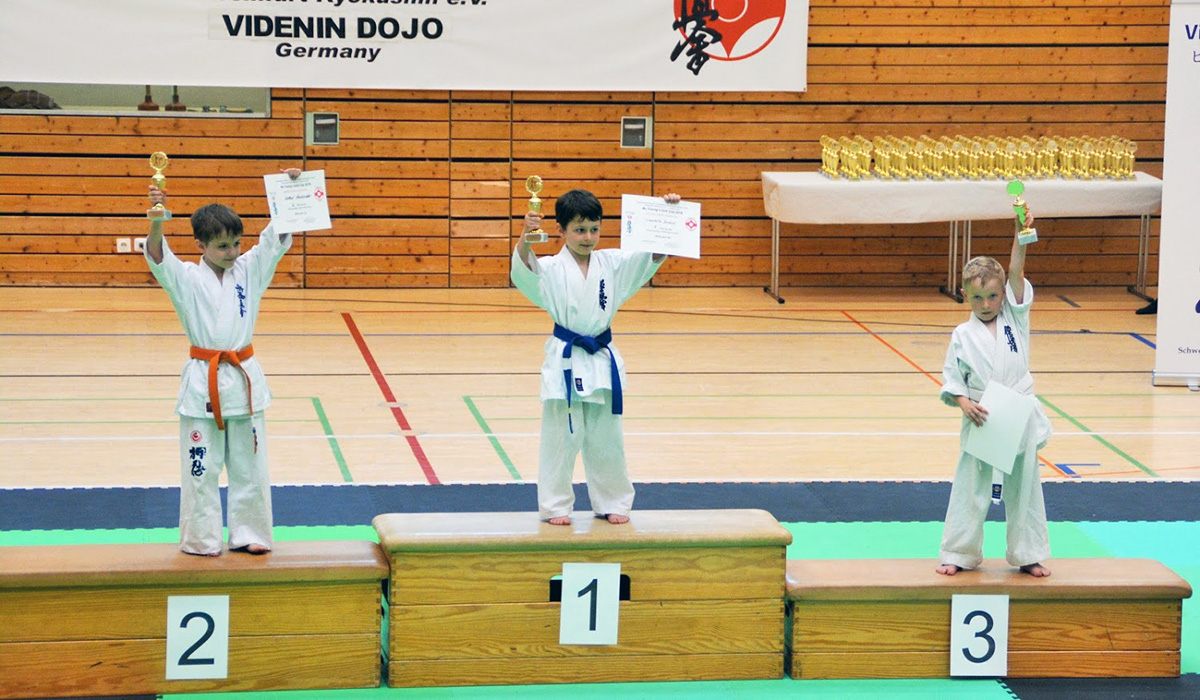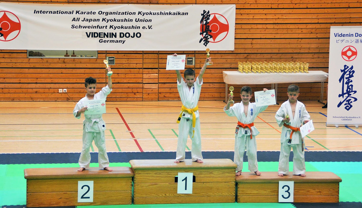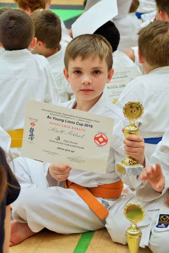 Наша молодая, в плане участников, и малочисленная, в плане количесва, команда приняла участие в небольшом детском турнире в Швайнфурте. Олег Хендель и Константин Шварц, как официальные представители нашей школы на этом турнире, подготовили ребят и секундировали всех, до самого конца. Это была первая проверка наших новичков, перед сражением на Dankezu Cup 2018. Парни справились с поставленными задачами, победили свой страх первого турнира и даже завоевали несколько по-настоящему призовых мест!