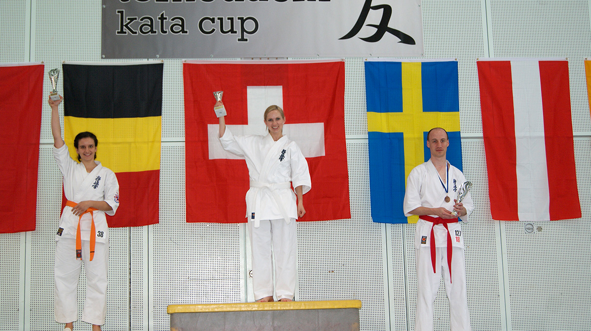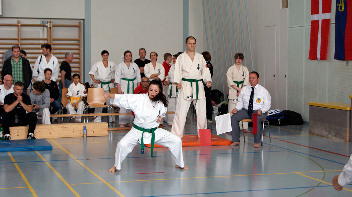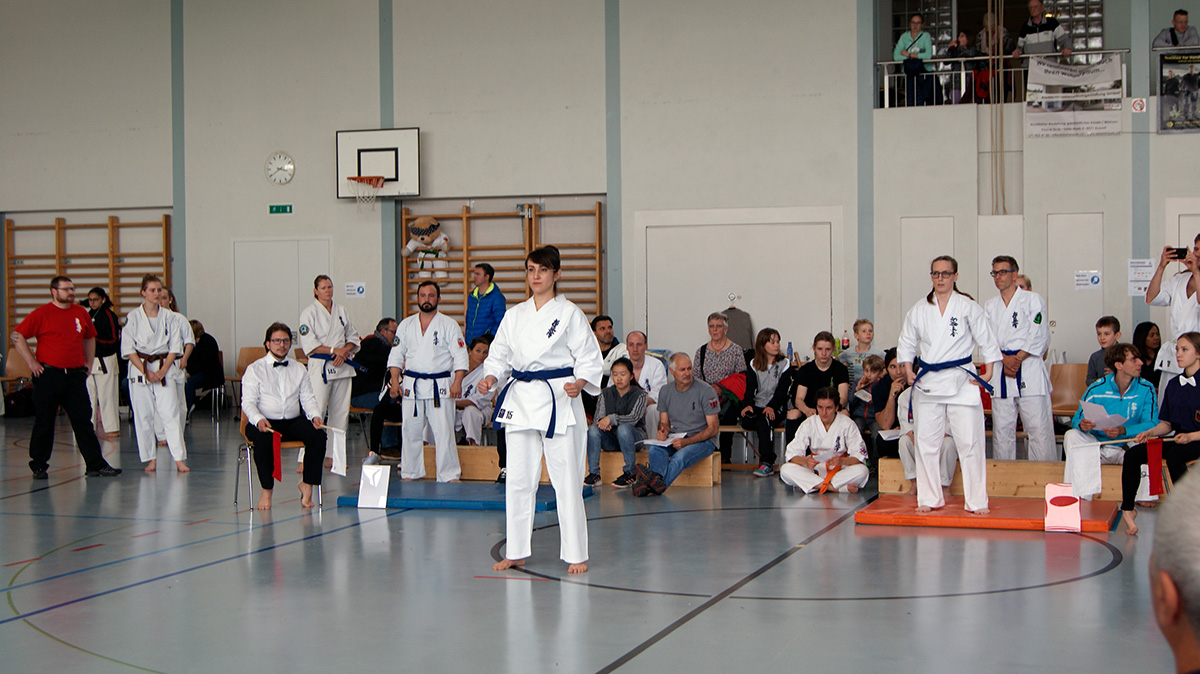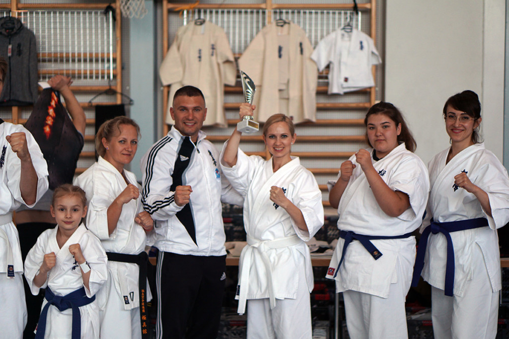 Мы впервые приняли участие в турнире по ката настоящей командой – 8 человек нашей школы от белых поясов до тренера Сэмпай Ирины, изъявили желание сразиться на татами в непривычных для нас условиях. Все спортсмены выполнили свои задания нормально, а некоторые – Лаура и Сэмпай Ирина – на отлично! Однако у судей по ката своё видение этого процесса, а посему нашим катистам не удалось пробиться в финалы турнира.