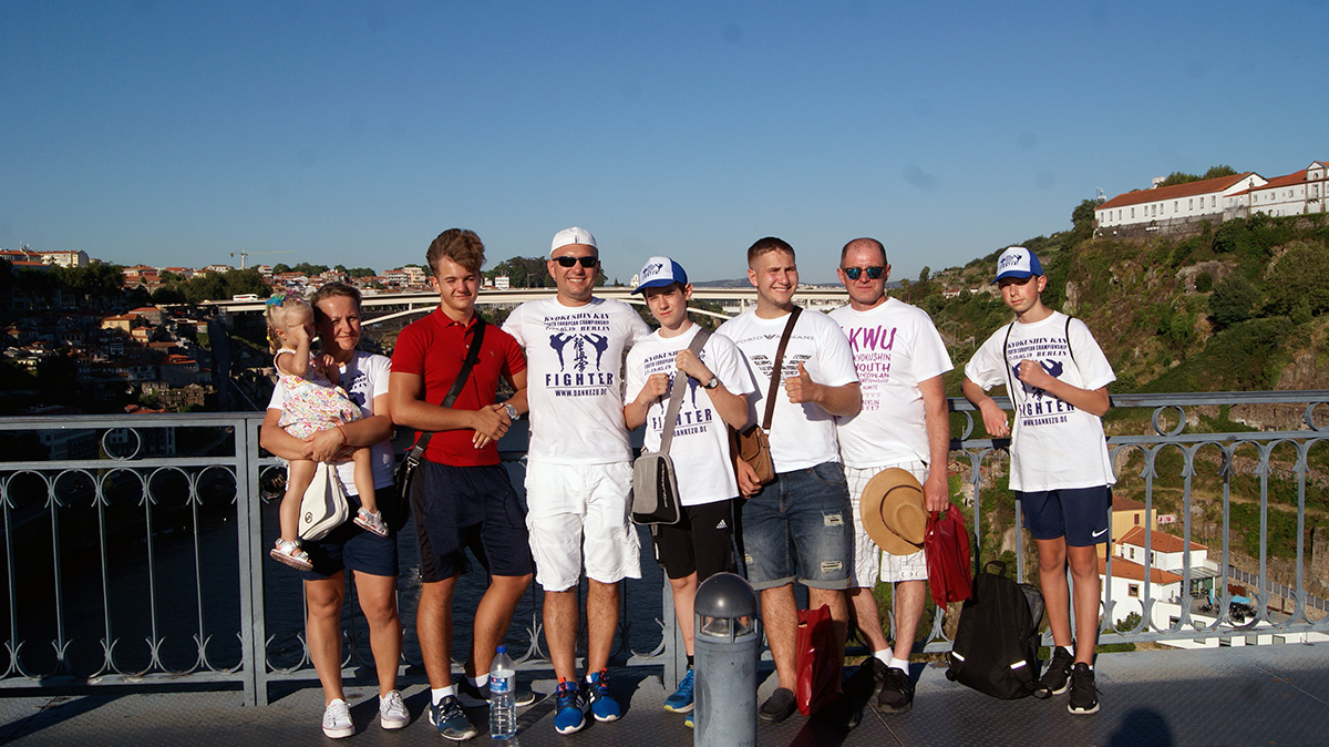 После нашего первенства Европы, где сражались лучшие бойцы мира, мы решили сделать в турнирах небольшую паузу и готовиться к предстоящим экзаменам. Однако от предложения поучаствовать в первенстве и чемпионате Португалии мы отказаться не смогли: во-первых семпаю Ивану в рамках подготовки к чемпионату МИРА KWU надо было по планам выйти на турнир именно в мае-июне, а во-вторых – наградили этой поездкой тех пацанов, чьё выступление на Европе нам особенно понравилось!