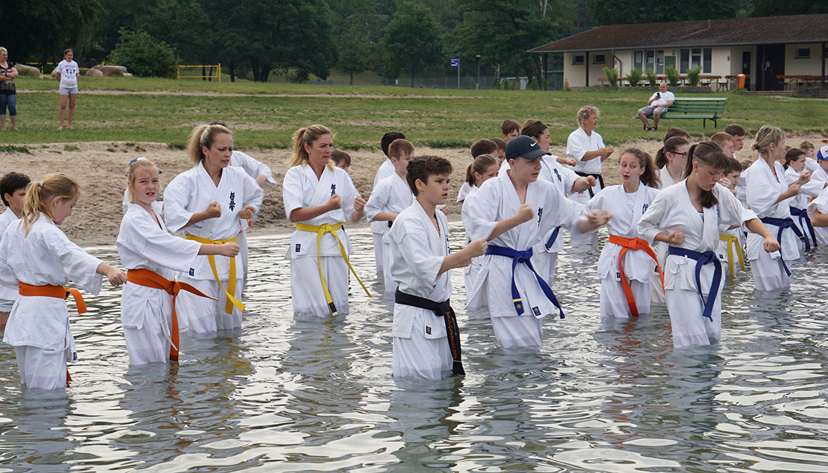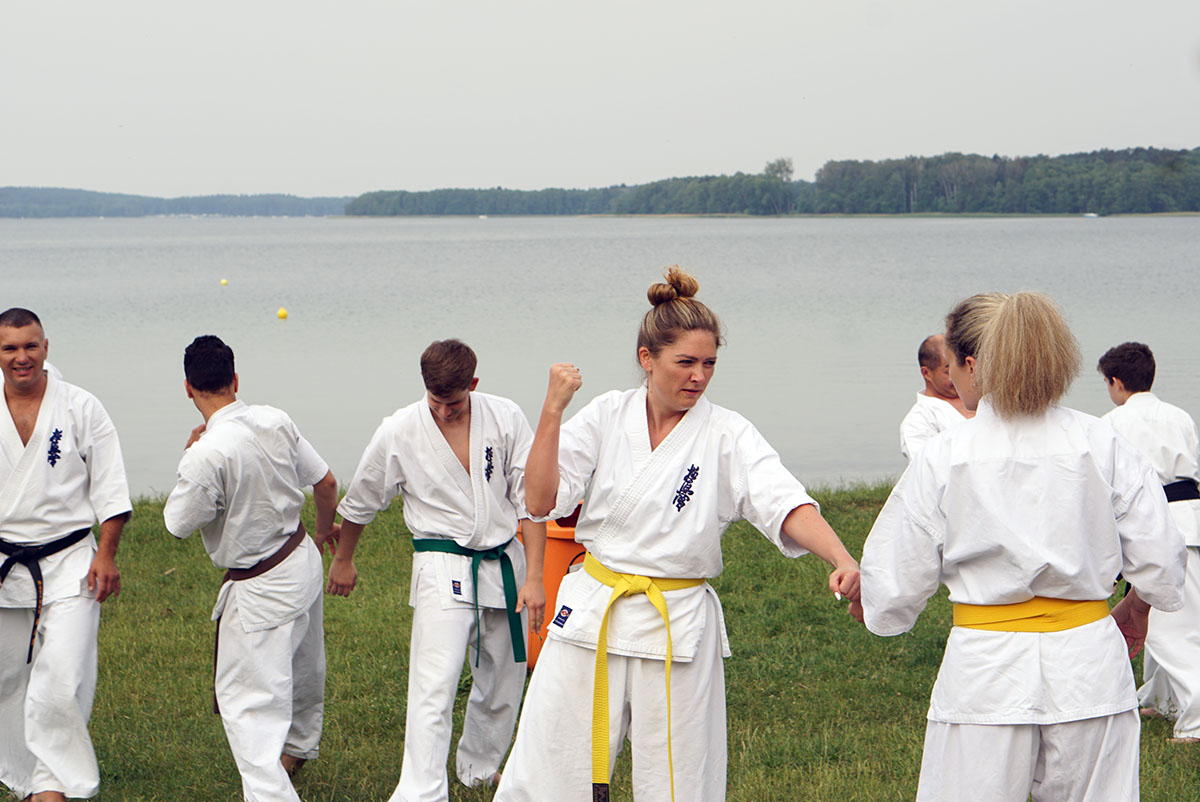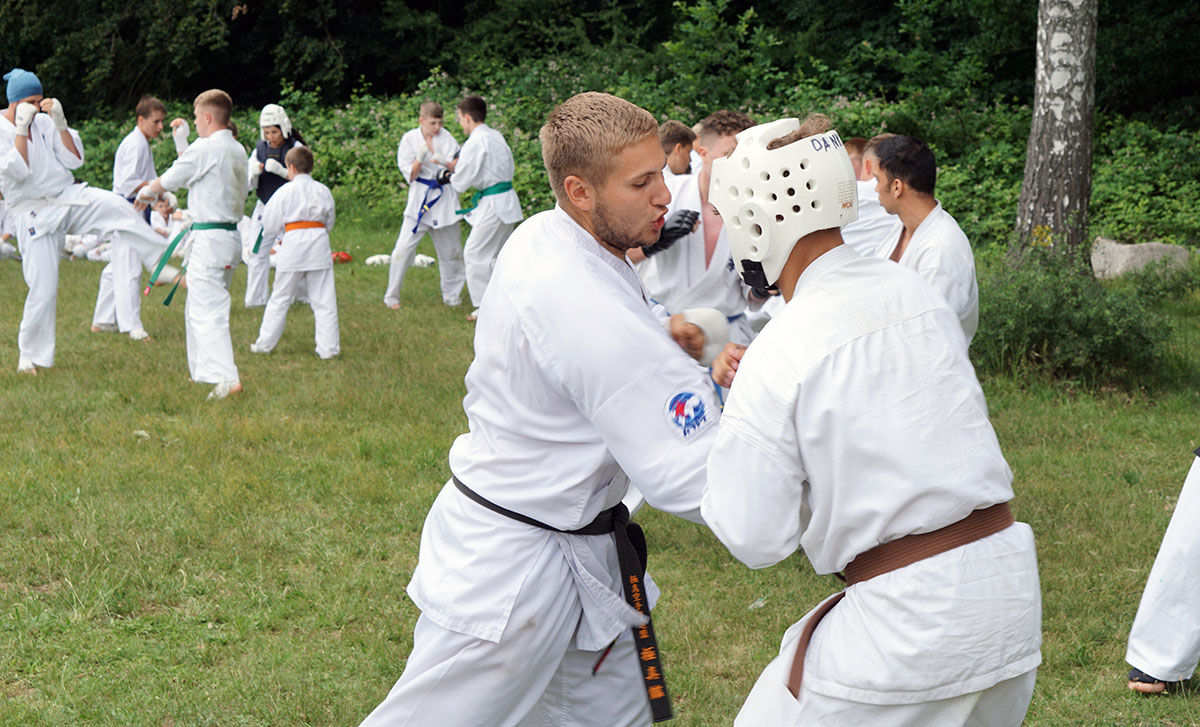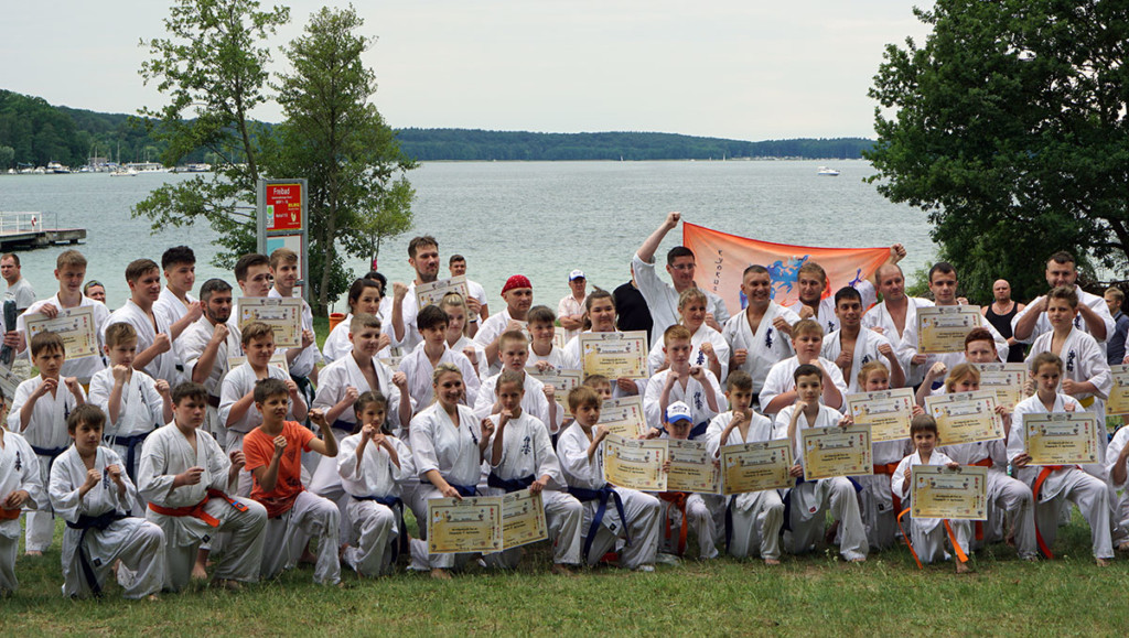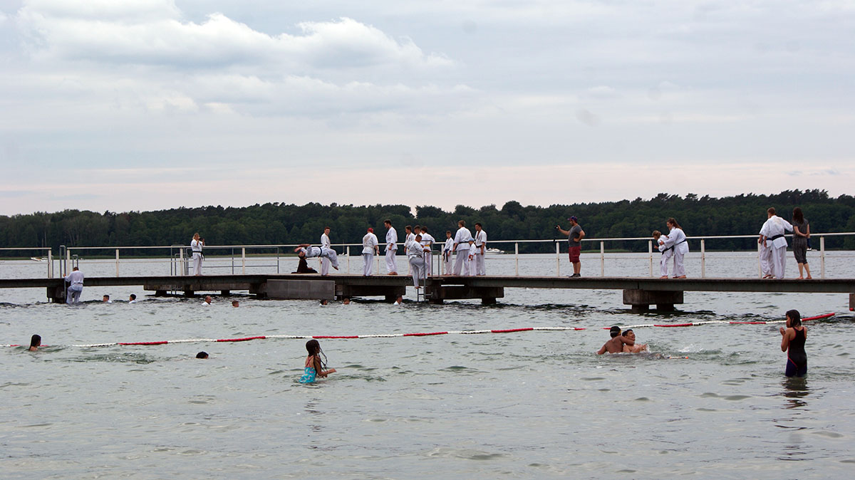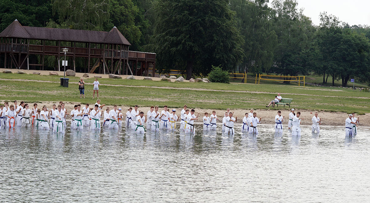 Ровно в середине июня мы провели наш традиционный лагерь в нашем любимом месте – на езере Вербеллин. В этот раз ровно 80 участников из трех различных федераций немецкого кикокушин прошли испытания в три дня. Работа с камнями и бревнами, „лестница-убийца“, растяжка на песке, ката и бункаи, Бо, спарринги и на суше и в воде, спортивные и специфические игры, теоретические занятия, медитация, психоанализ и пробежки – всё это мы успели за трое суток воплотить в жизнь. Ну, а „Starteen“ – танцевальный конкурс для всех, был поистине невероятным.