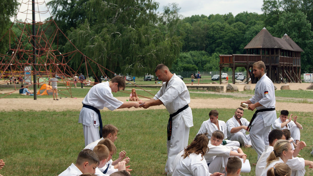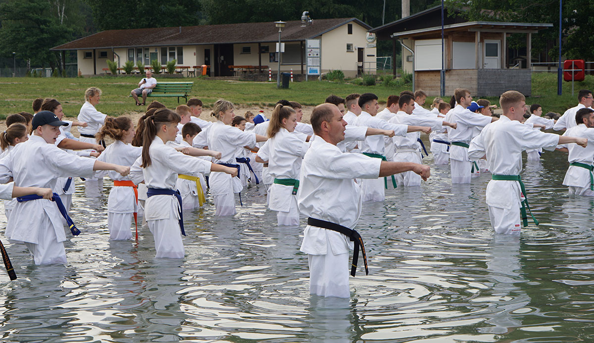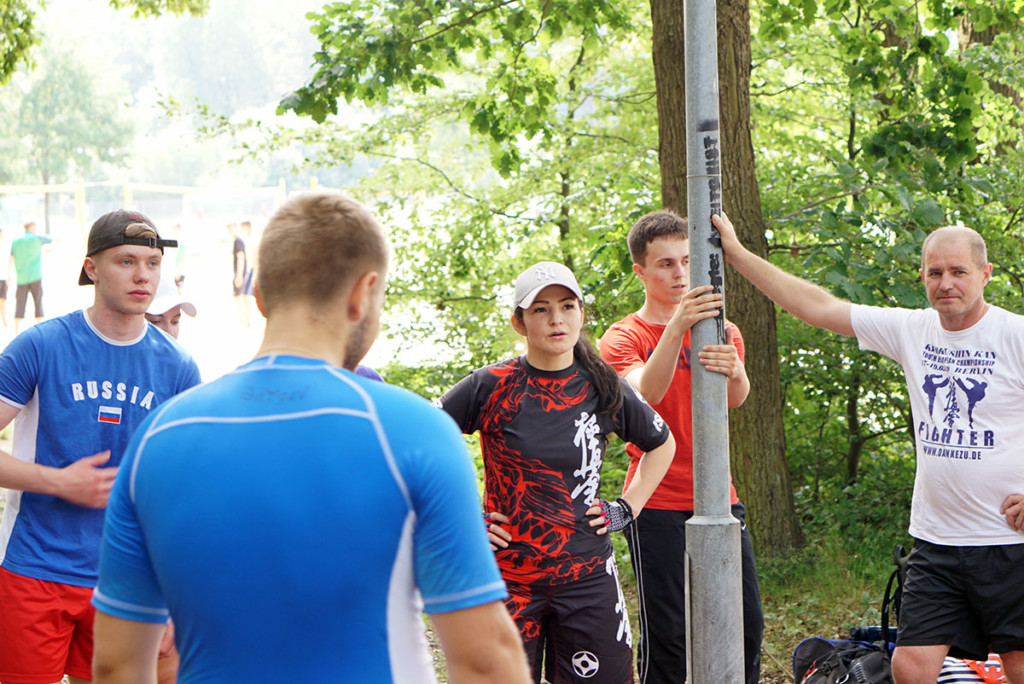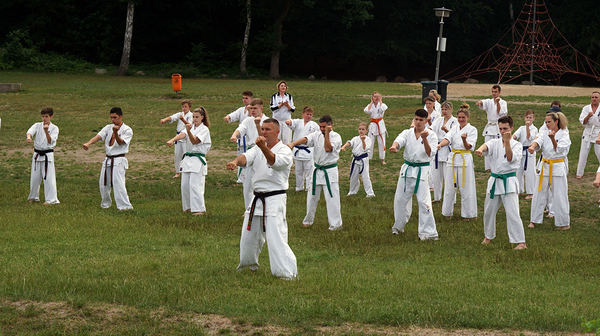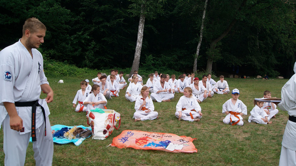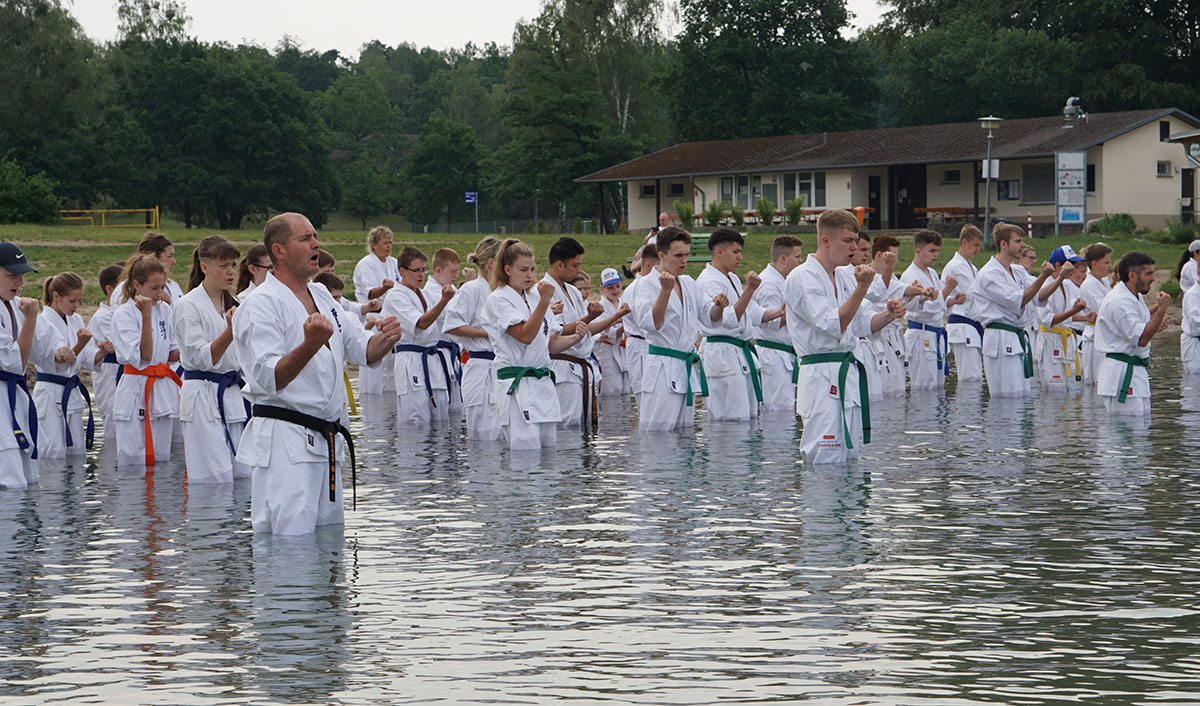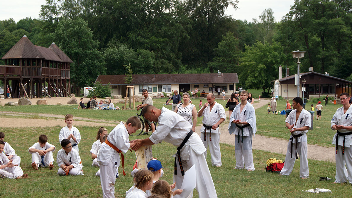 Ровно в середине июня мы провели наш традиционный лагерь в нашем любимом месте – на езере Вербеллин. В этот раз ровно 80 участников из трех различных федераций немецкого кикокушин прошли испытания в три дня. Работа с камнями и бревнами, „лестница-убийца“, растяжка на песке, ката и бункаи, Бо, спарринги и на суше и в воде, спортивные и специфические игры, теоретические занятия, медитация, психоанализ и пробежки – всё это мы успели за трое суток воплотить в жизнь. Ну, а „Starteen“ – танцевальный конкурс для всех, был поистине невероятным.