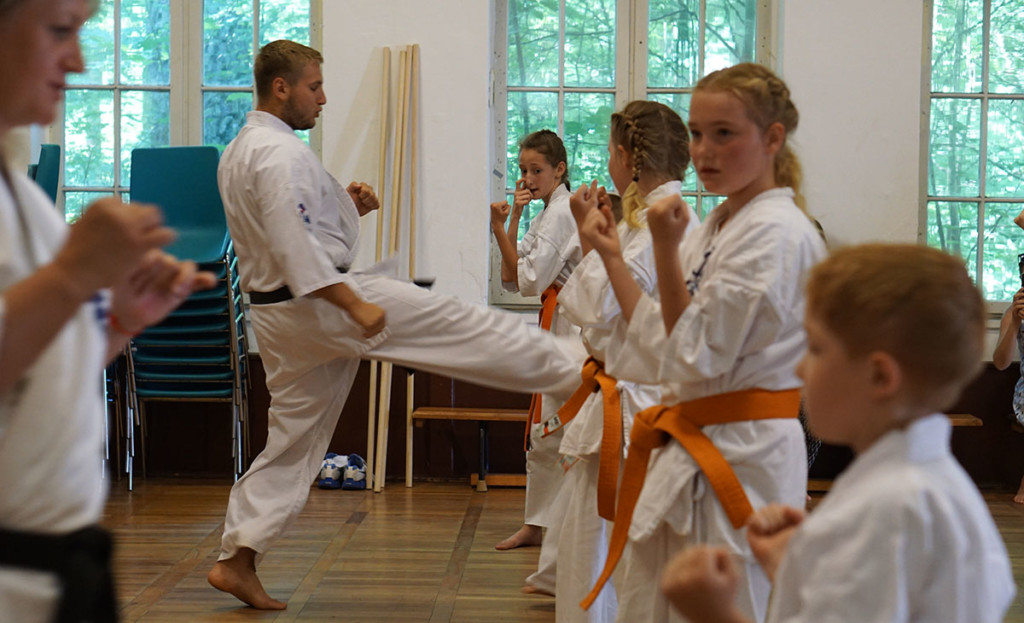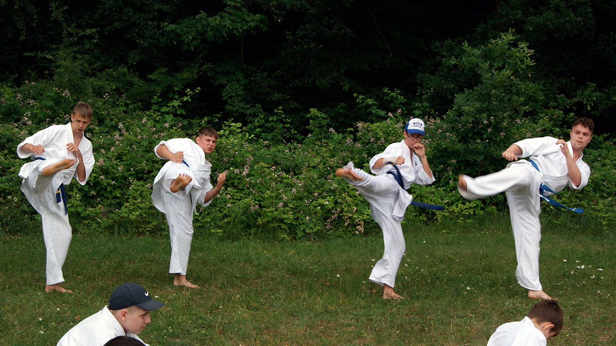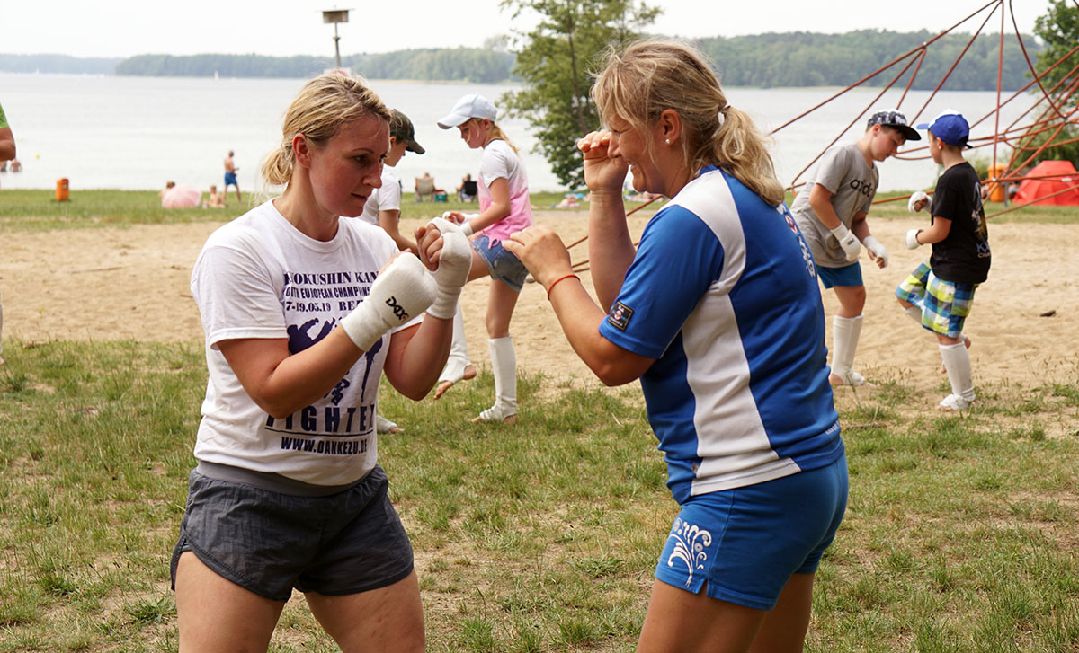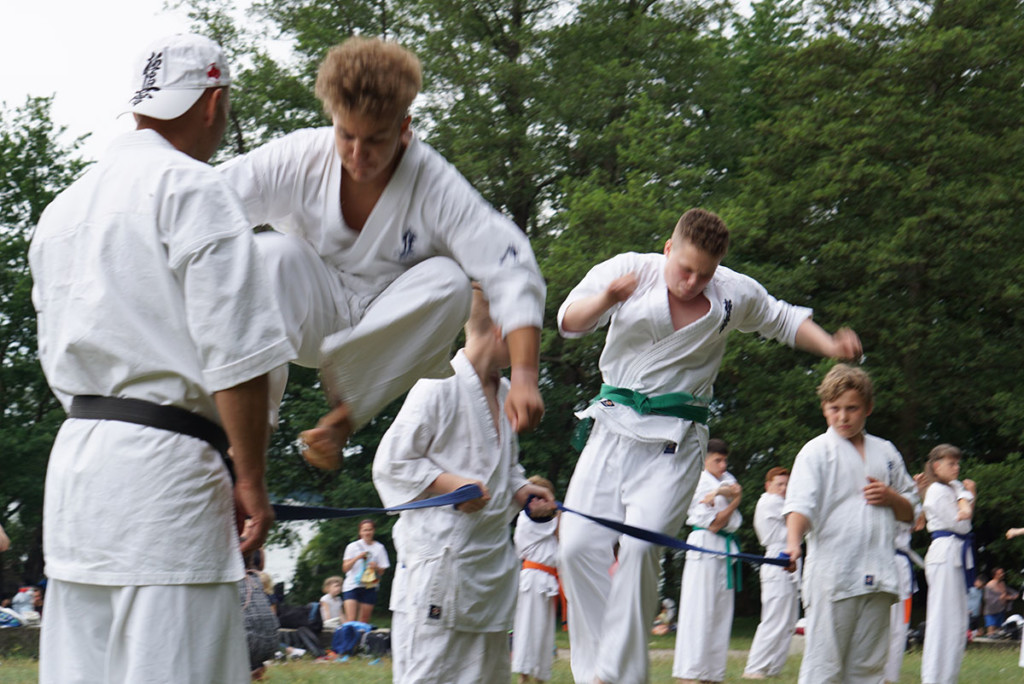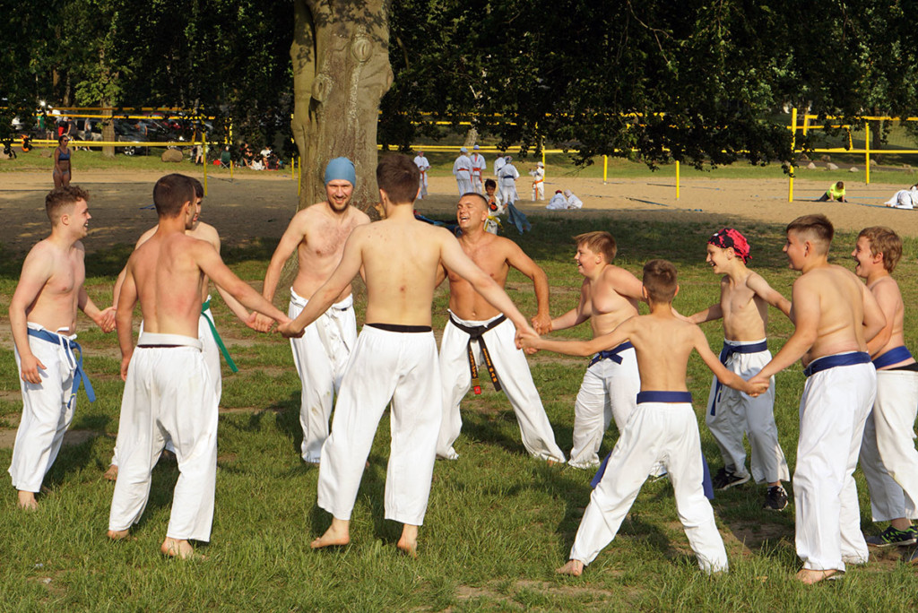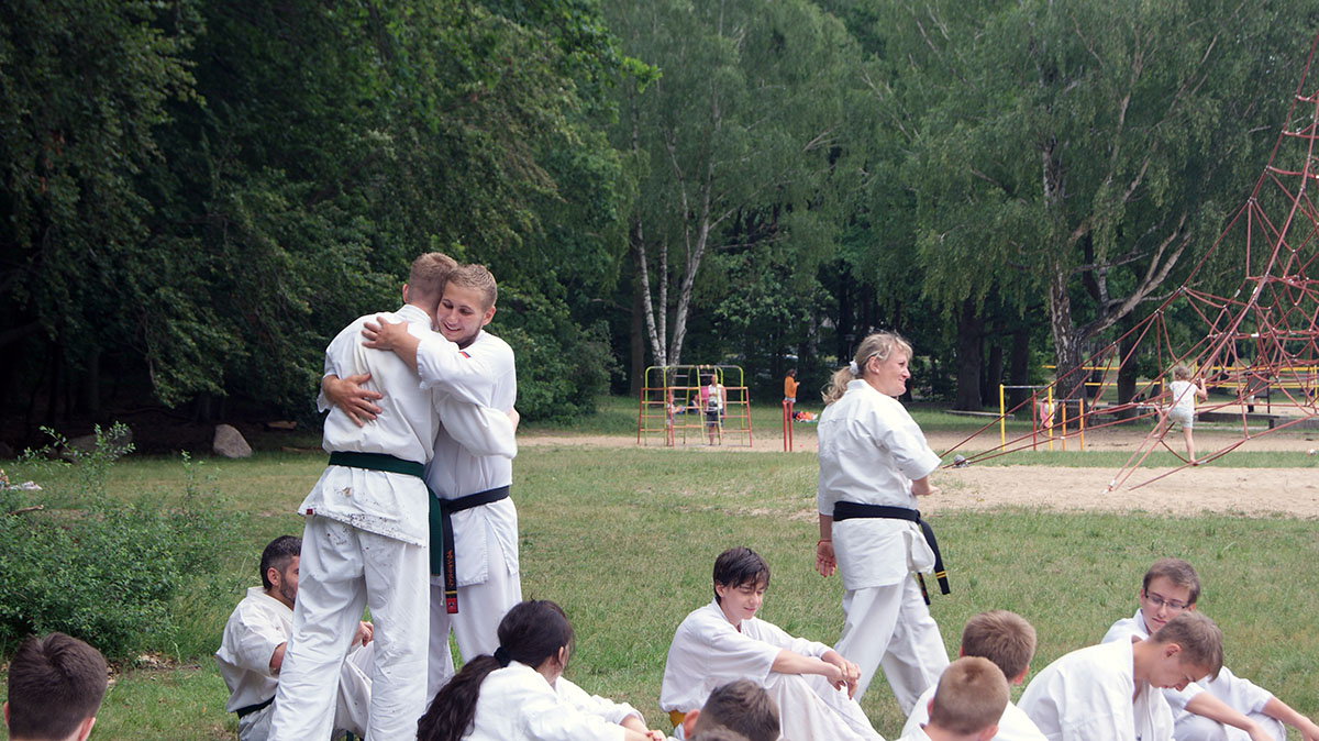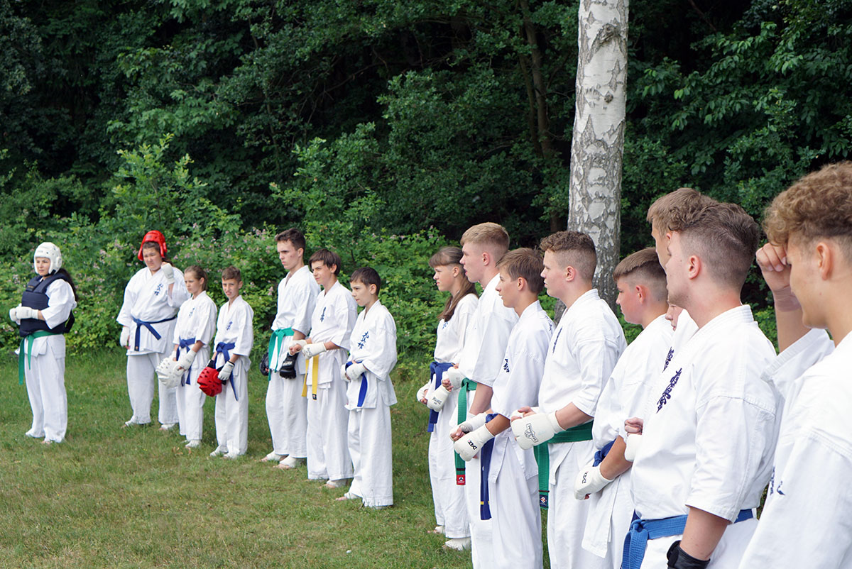 Ровно в середине июня мы провели наш традиционный лагерь в нашем любимом месте – на езере Вербеллин. В этот раз ровно 80 участников из трех различных федераций немецкого кикокушин прошли испытания в три дня. Работа с камнями и бревнами, „лестница-убийца“, растяжка на песке, ката и бункаи, Бо, спарринги и на суше и в воде, спортивные и специфические игры, теоретические занятия, медитация, психоанализ и пробежки – всё это мы успели за трое суток воплотить в жизнь. Ну, а „Starteen“ – танцевальный конкурс для всех, был поистине невероятным.