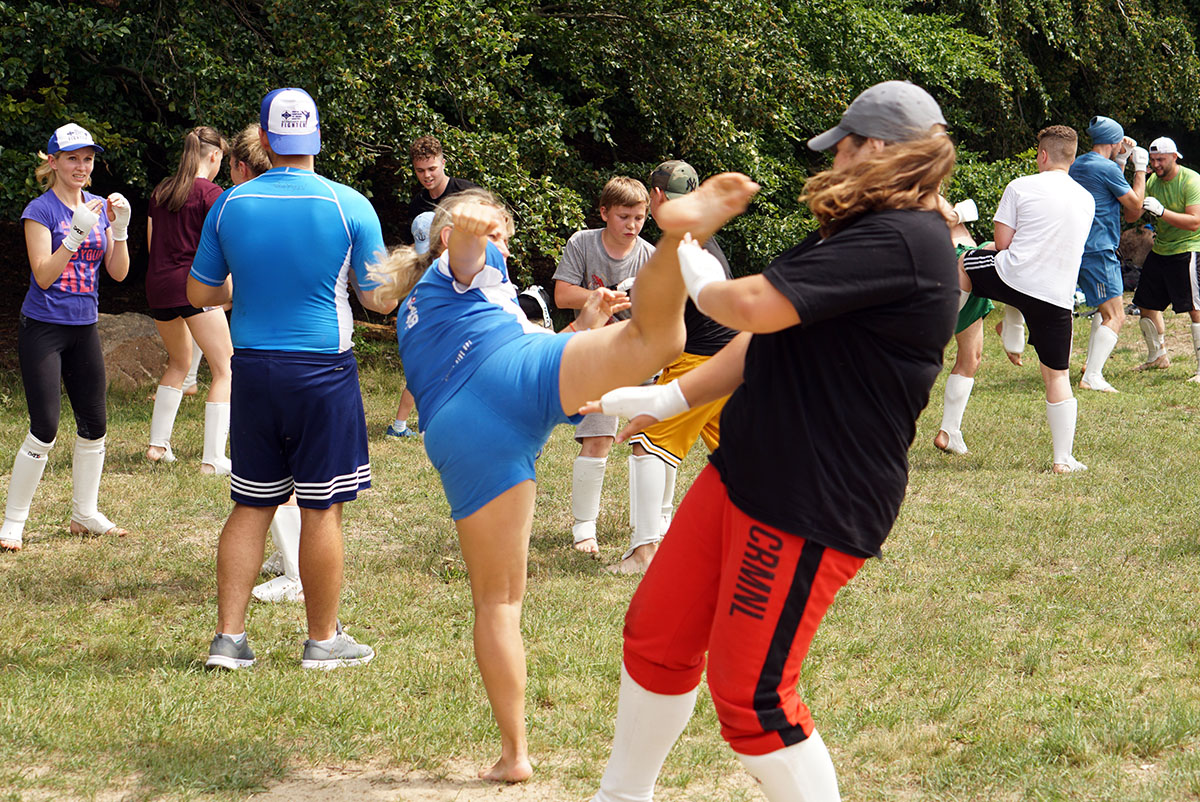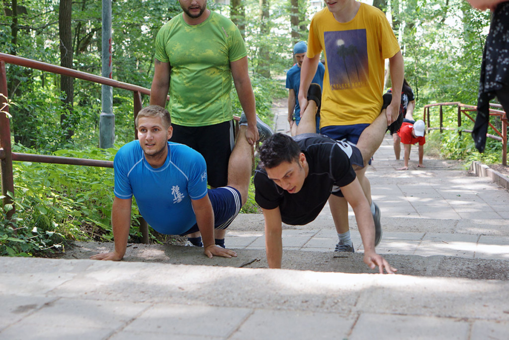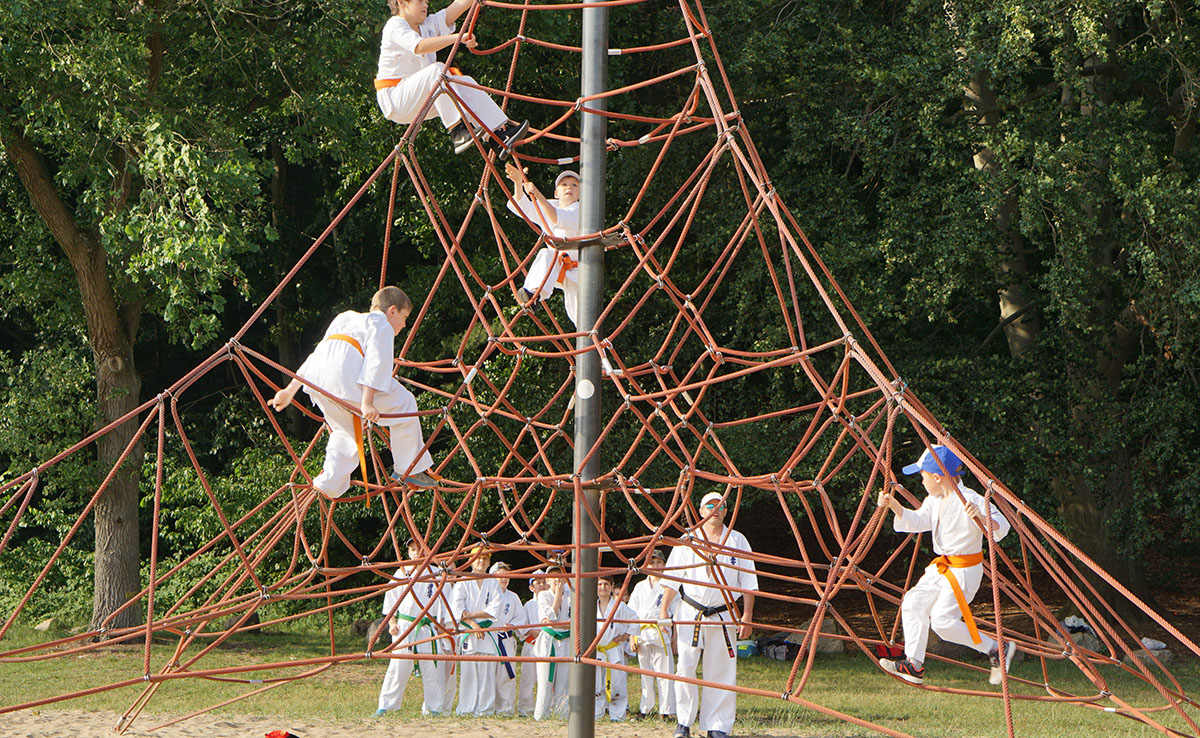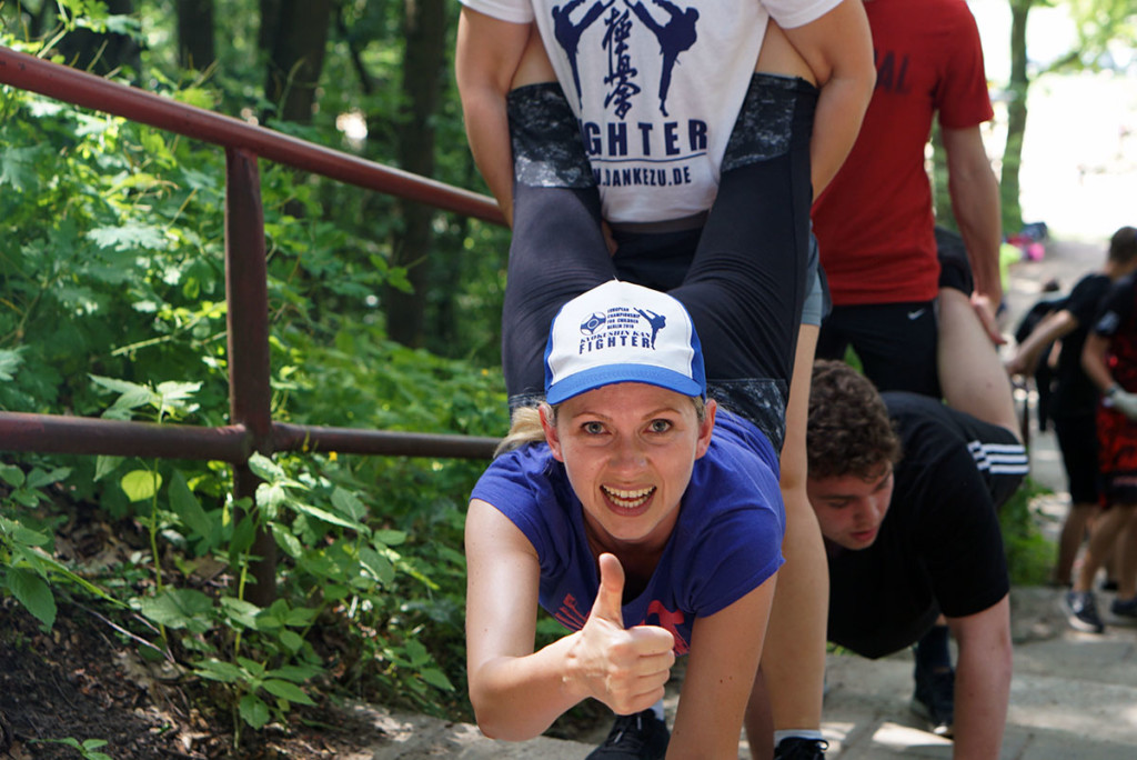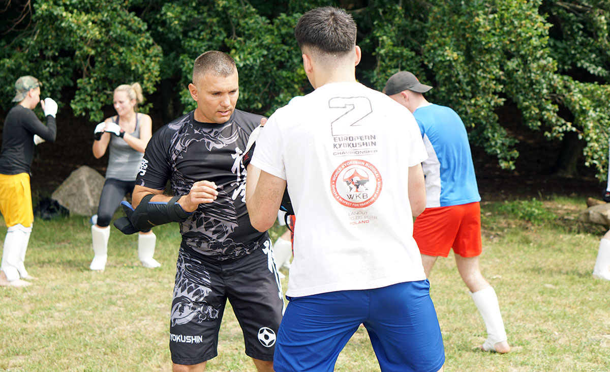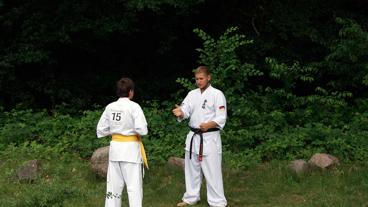 Ровно в середине июня мы провели наш традиционный лагерь в нашем любимом месте – на езере Вербеллин. В этот раз ровно 80 участников из трех различных федераций немецкого кикокушин прошли испытания в три дня. Работа с камнями и бревнами, „лестница-убийца“, растяжка на песке, ката и бункаи, Бо, спарринги и на суше и в воде, спортивные и специфические игры, теоретические занятия, медитация, психоанализ и пробежки – всё это мы успели за трое суток воплотить в жизнь. Ну, а „Starteen“ – танцевальный конкурс для всех, был поистине невероятным.