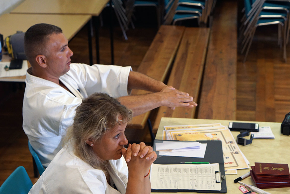 Поздравляю всех, кто прошел все испытания – в этот раз ни одного „нытика“, ни одной чересчур переживающей мамочки не оказалось рядом, а значит никто не мешал воспитывать настоящих бойцов каратэ! Поздравляю всех, кто успешно сдал экзамен на следующую степень – вами можно гордиться! Хочу отметить двух каратэков нашей школы – Элю Тимофееву, как самую юную спортсменку, успешно сдавшую экзамен на 10-й кю, и Стивена Деманова – как самого юного бойца школы с новой степенью – 1-й кю!