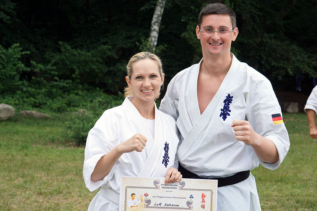 Спасибо огромное команде из Веделя, которая под руководством Светланы Хинц продолжает славный путь киокушин после ухода Сэнсея Акселя! Сэмпаи WKB Германии – Даниэль и Максим дали интересные тренировки по традиционному киокушин и ката. Огромное спасибо моим Сэмпаям – Ивану, Ирине и Артему за интересные, необычные и насыщенные упражнения в рамках наших заданий.