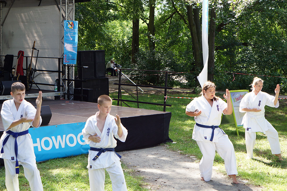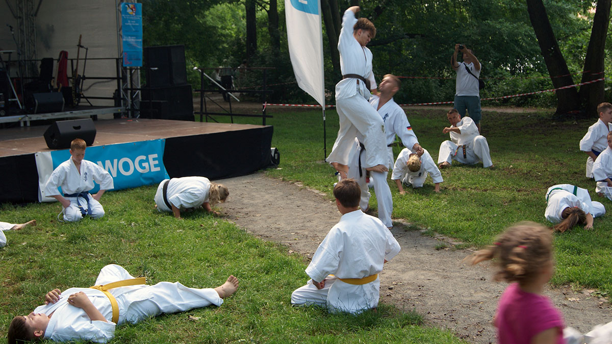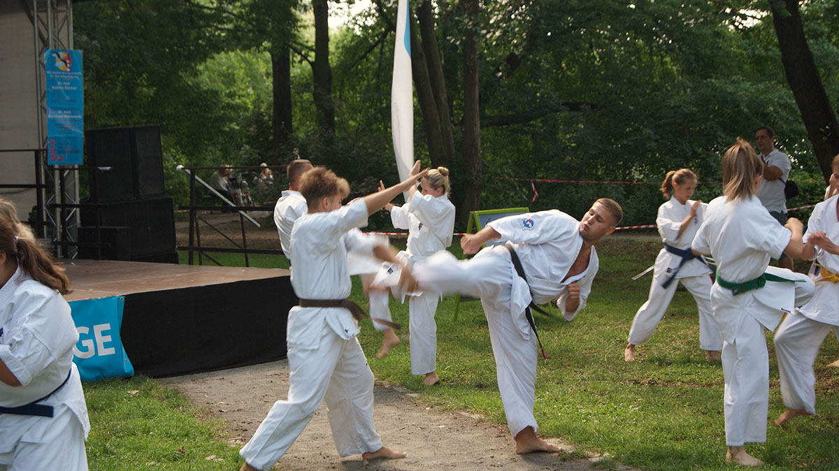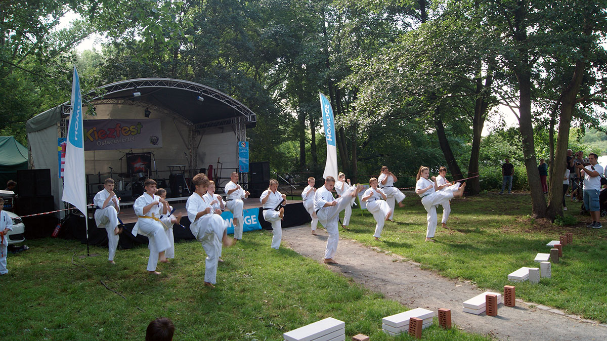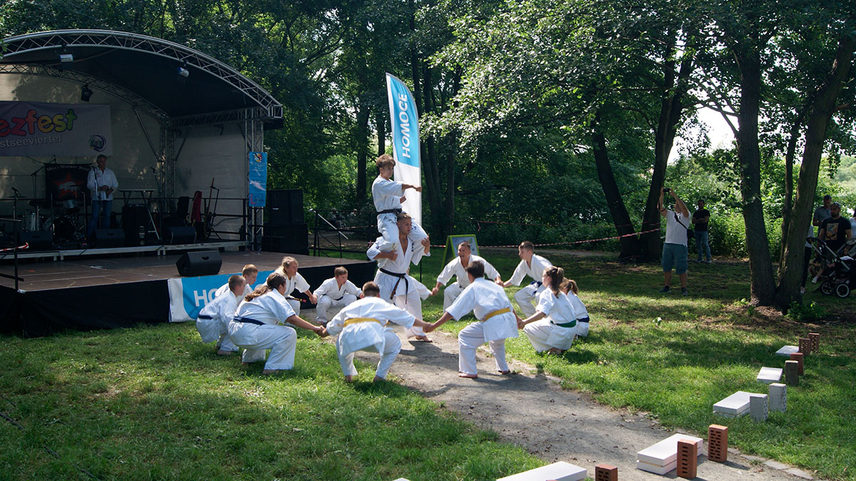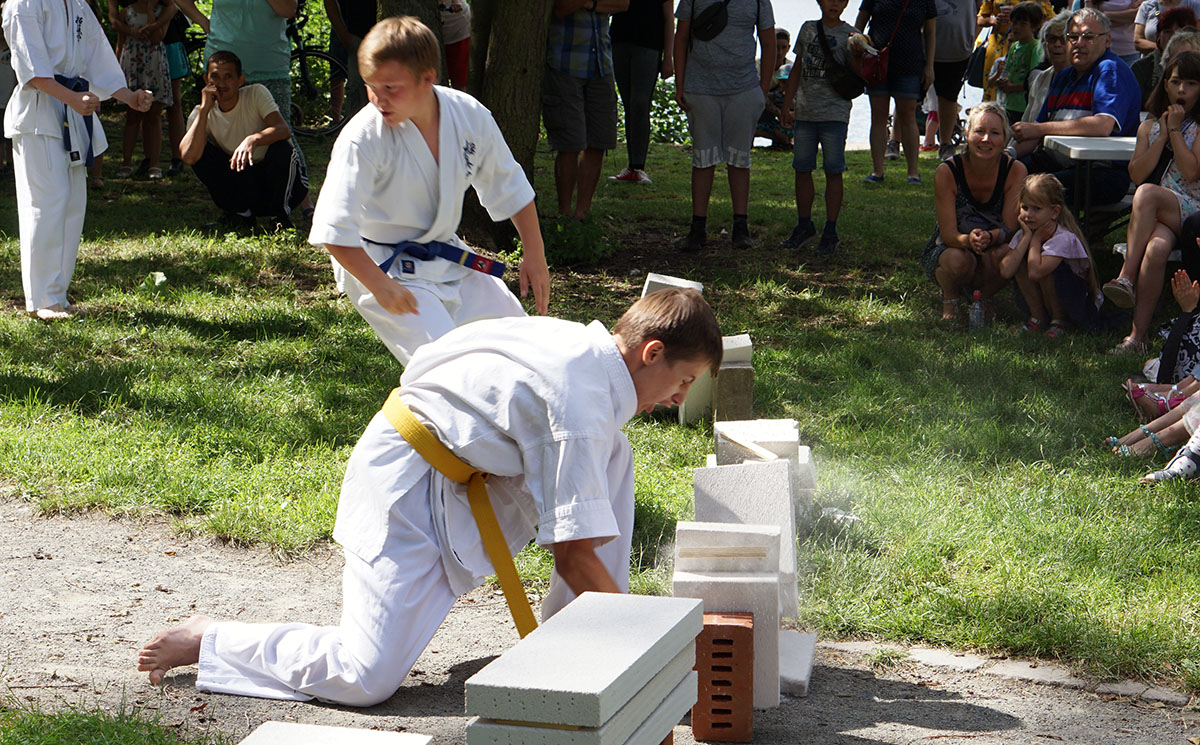 В первые же дни каникул мы оказались на одном из уличных праздников, который был организован на озере, куда мы частенько прибегаем из нашего Додзё в период подготовок. Классическое выступление, состоящее из кихона, кондиции, кумитэ и, конечно же, ката, было нами выполнено практически без репетиций и подготовок!
