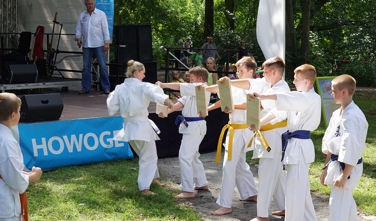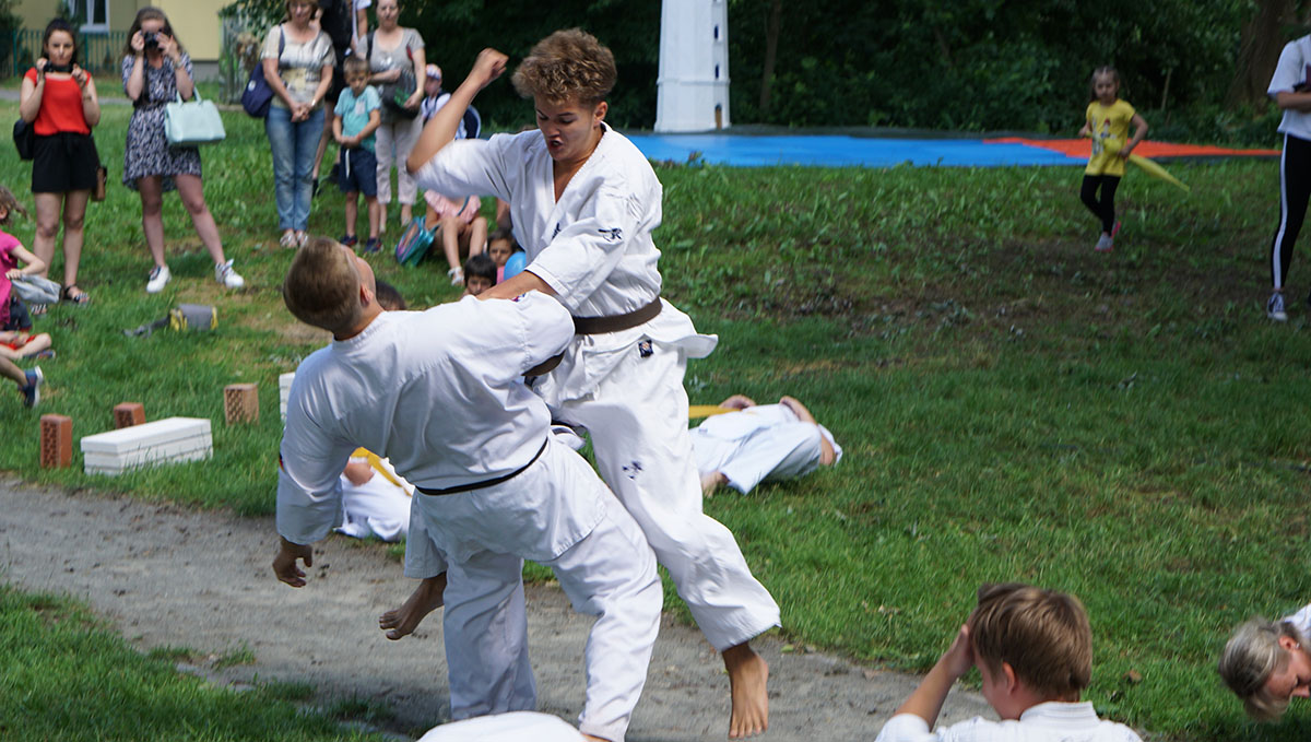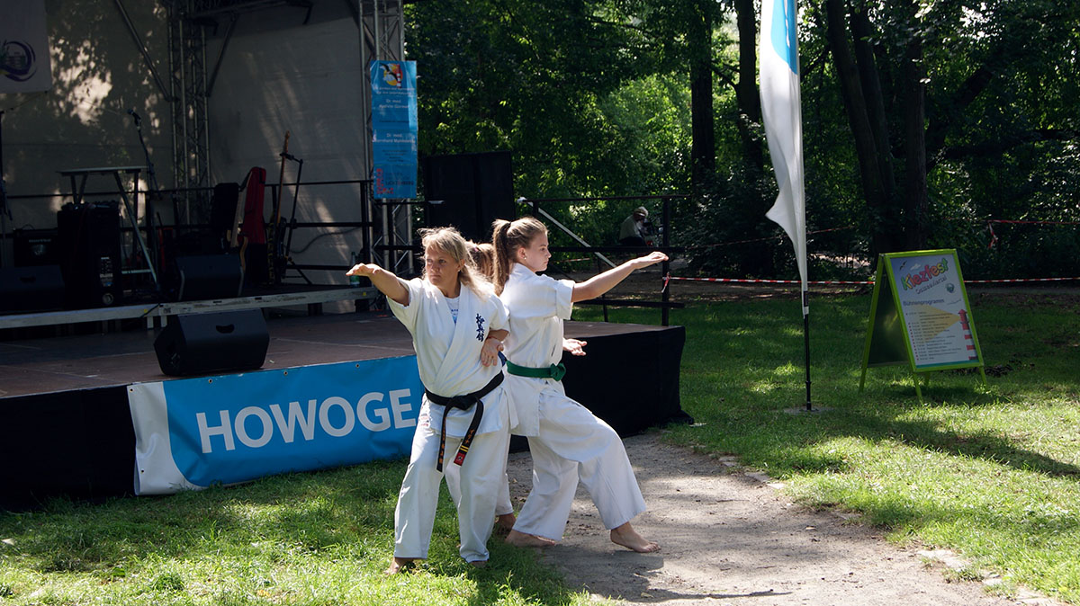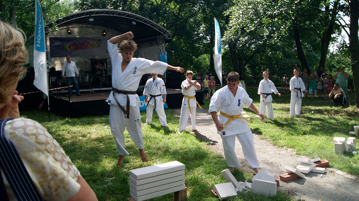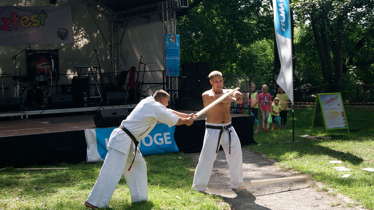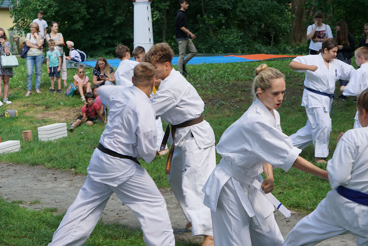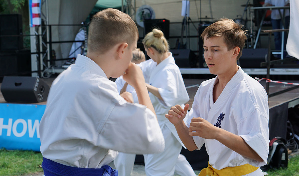 В первые же дни каникул мы оказались на одном из уличных праздников, который был организован на озере, куда мы частенько прибегаем из нашего Додзё в период подготовок. Классическое выступление, состоящее из кихона, кондиции, кумитэ и, конечно же, ката, было нами выполнено практически без репетиций и подготовок!