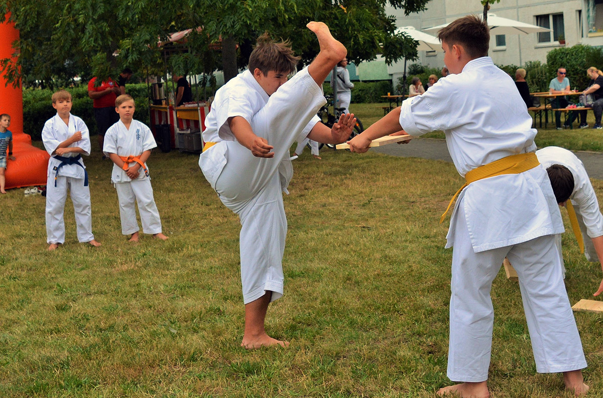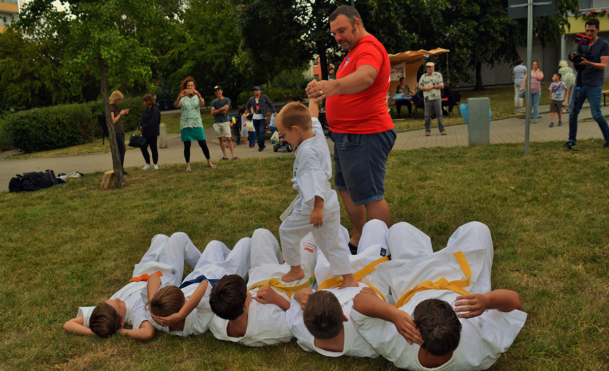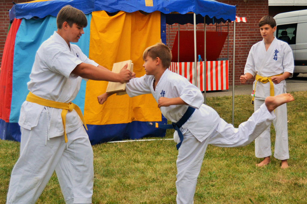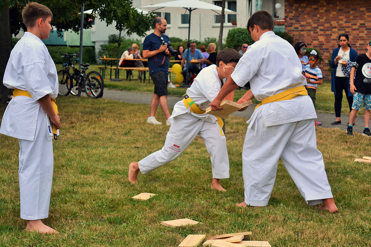 Иногда нам приходится выступать тогда, когда практически все в отпусках и разъездах. Именно так и получилось в этот раз – в самый разгар каникул мало кто остался в Берлине. Тем ценнее такие выступления, и тем глубже моё уважение ребятам, которые нашли время представить наше каратэ. Огромный респект семье Кролль, которые и организовали, и фотографировали и выступали! А Альберту и Лиору – отдельный „ОСУ“ за поддержку этой великолепной семьи!