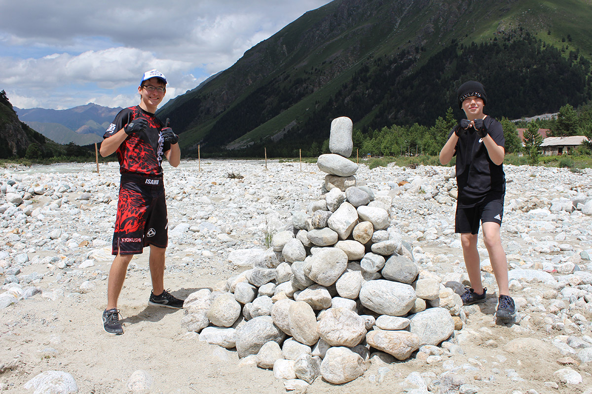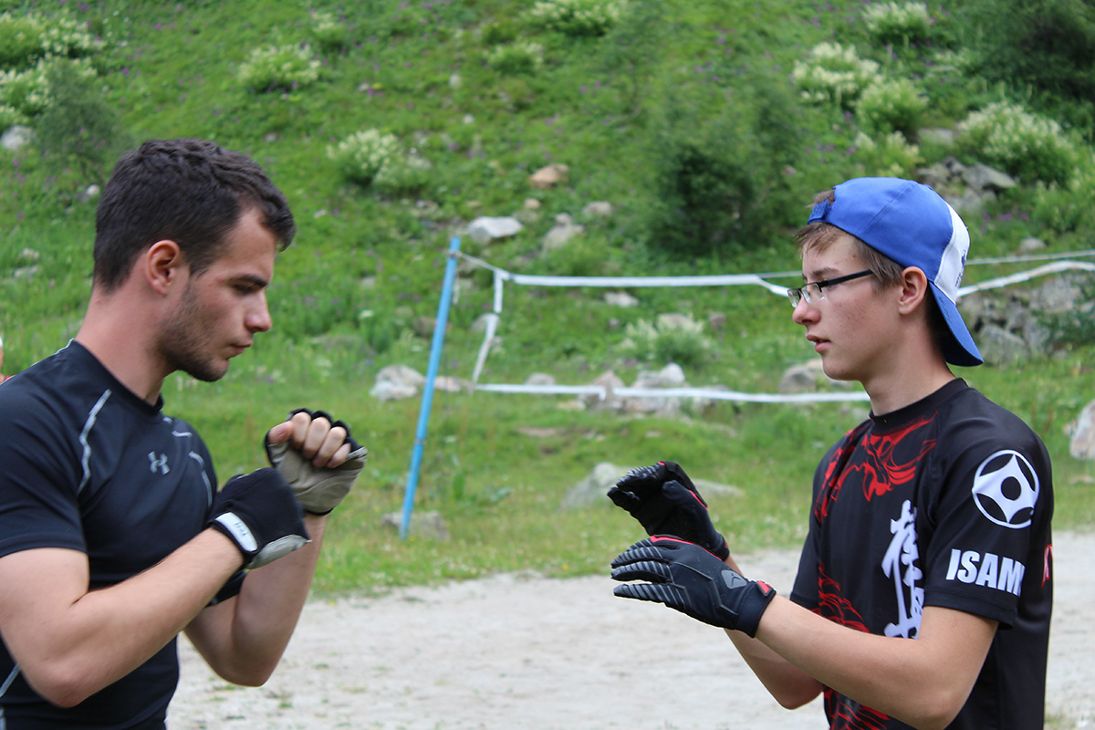 Невероятная красота Кавказских гор придавала нам сил и вдохновляла на новые подвиги. Сэмпай Иван сумел сходить в один поход дважды – он вернулся к роднику и принес 20 литров воды один! Дима Тюменцев придумал новое ката и воплотил его в жизнь, Юля, единственная прилетевшая из Германии девочка, сражалась с парнями на равных, Стивен умудрился пораниться в первые же дни, но участвовал во всех тренировках по полной. Кевин помогал Сэнсеям в любых организационных вопросах, Роберт и Никита стойко переносили холод и отсутствие интернета, Штефан боролся сам с собой, а Кирилл набирался эмоций и сил больше всех. Отдельно хочу отметить маму Любу Тюменцеву, которая прошла все тропы, побывала с нами на всех тренировках и сделала невероятно красивые фото всего нашего приключения на Кавказе!