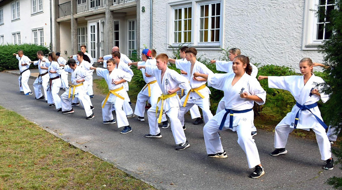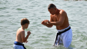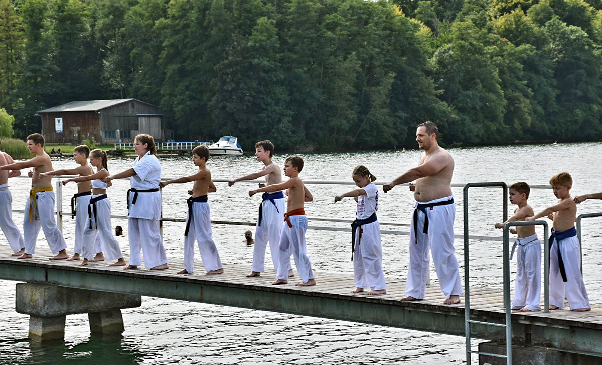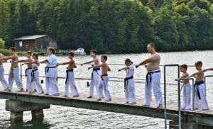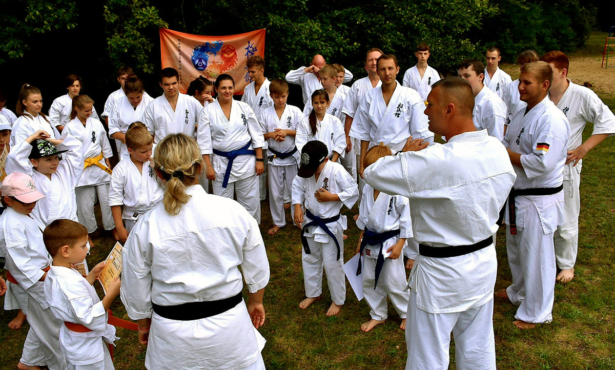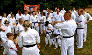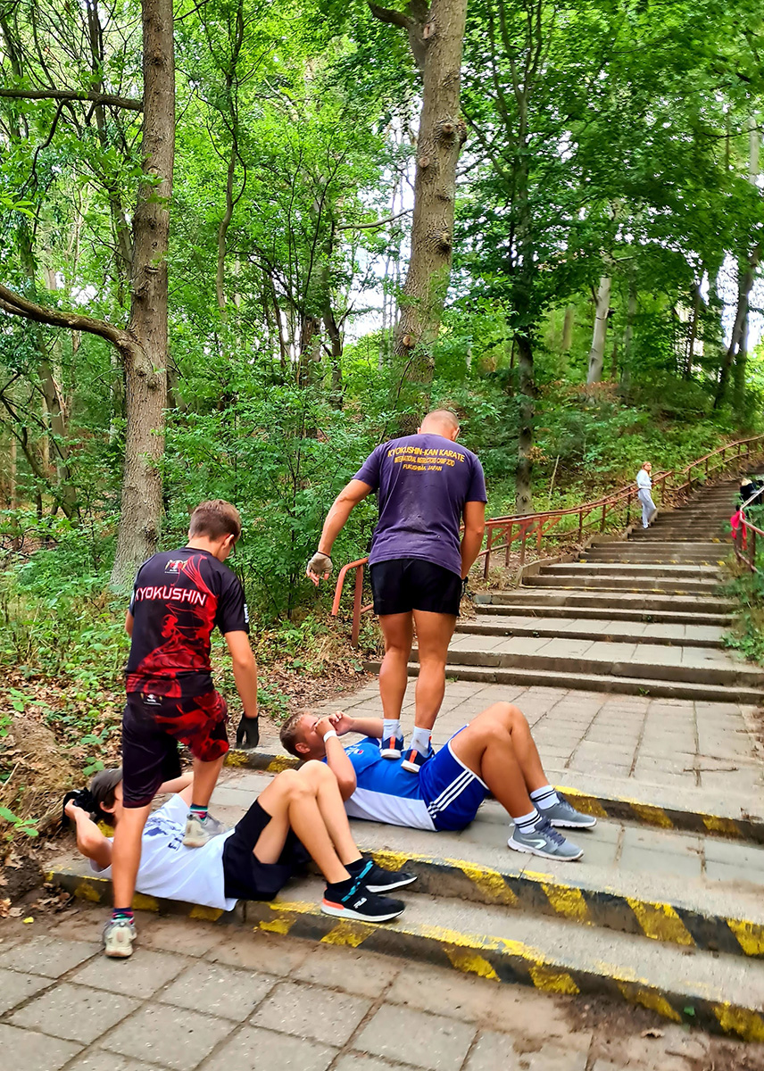 Традиционную „Лестницу-убийцу“ покорили практически все, выполнив за час тяжелейшие 4 упражнения с собственным весом и с помощью партнера. Тренировку по классическому кихону наблюдали все гости – целый час вся команда выполняла техники, передвигаясь по всей территории лагеря. Тренировку по кумитэ провели без пауз – только бои, без времени, пауз и страха! Ну а игровые задания в первый день – эстафеты, футбол, волейбол и плавание понравились абсолютно всем и дали заряд на все три дня.