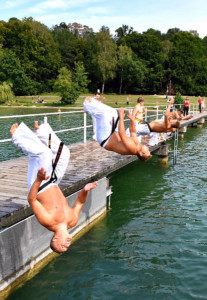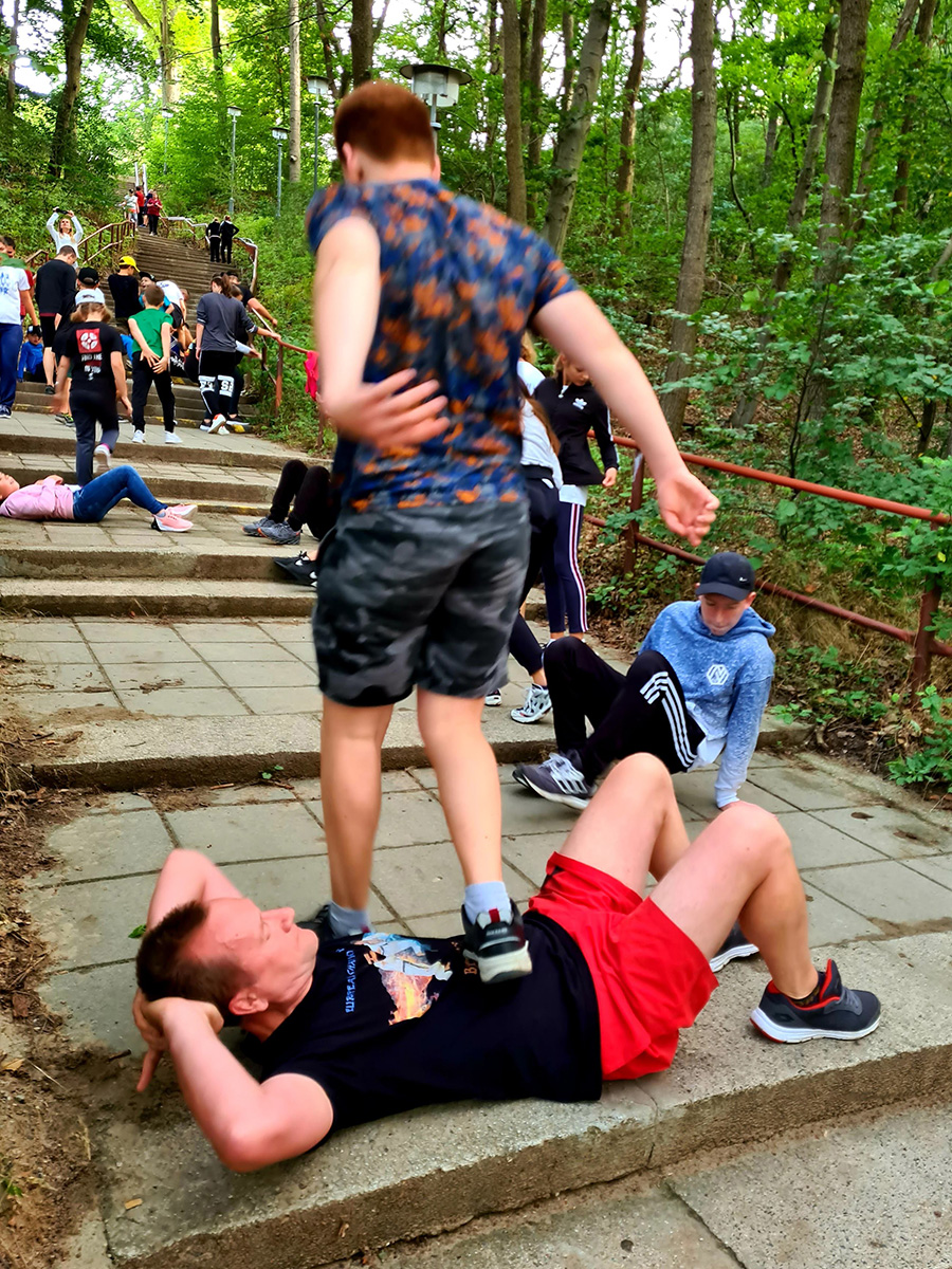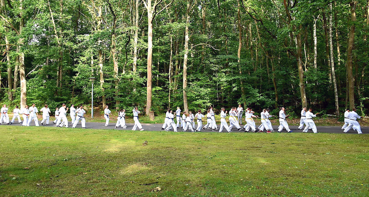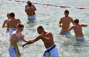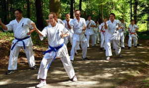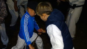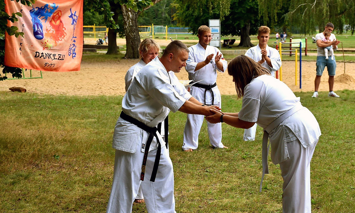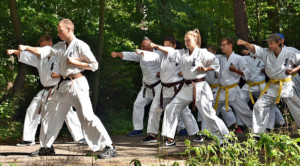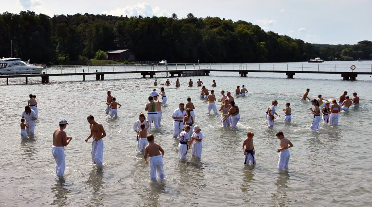 Традиционную „Лестницу-убийцу“ покорили практически все, выполнив за час тяжелейшие 4 упражнения с собственным весом и с помощью партнера. Тренировку по классическому кихону наблюдали все гости – целый час вся команда выполняла техники, передвигаясь по всей территории лагеря. Тренировку по кумитэ провели без пауз – только бои, без времени, пауз и страха! Ну а игровые задания в первый день – эстафеты, футбол, волейбол и плавание понравились абсолютно всем и дали заряд на все три дня.