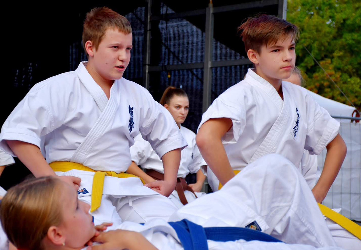Младшие девочки из Danzu открыли наше выступление, охрана помогла отодвинуть зрителей на нужное нам от сцены место, и тут началось: гейши провели обряд чайной церемонии, и вывели самураев на сцену. Самураи в свою очередь продемонстрировали кихон, и вышли на путь кумитэ – моментально сразившись с партнерами по очереди!