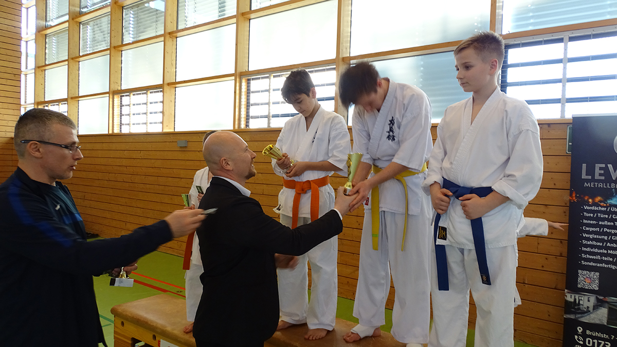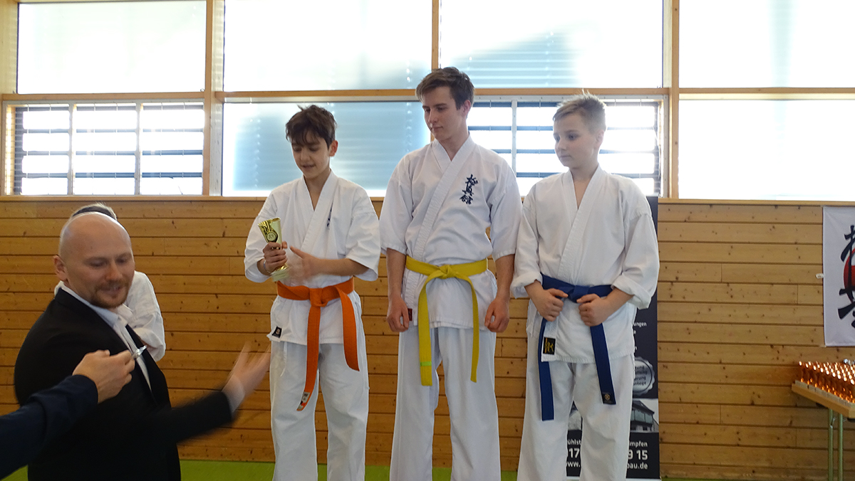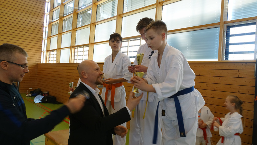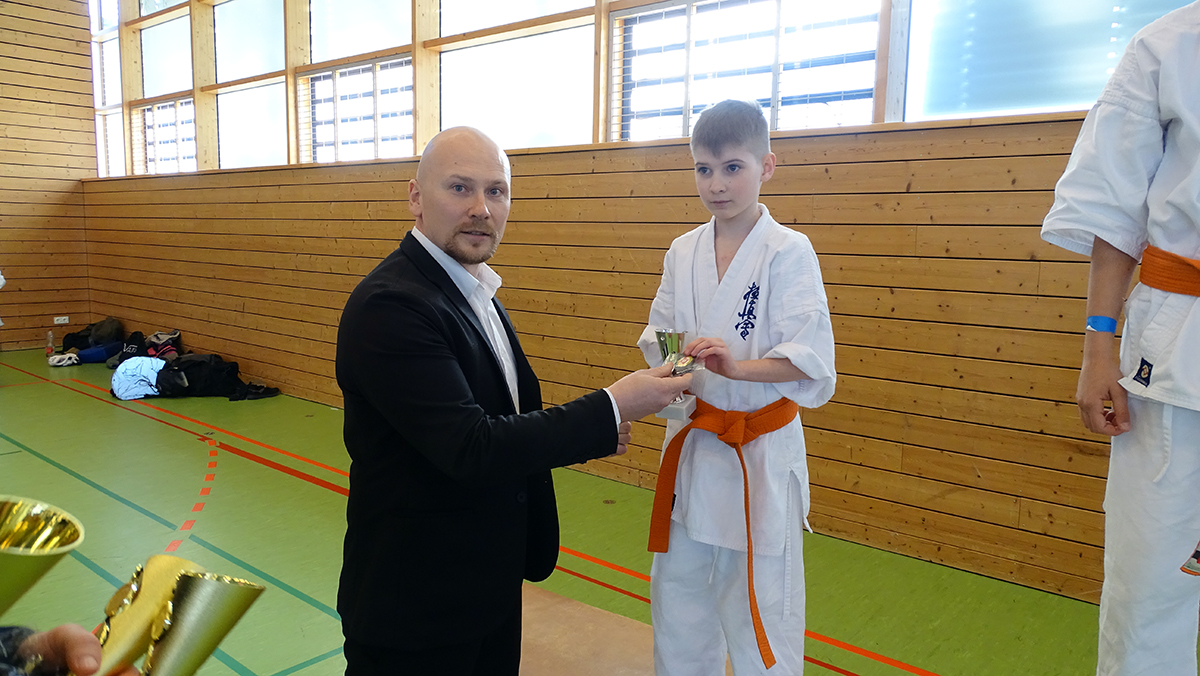 Наши новички решили принять участие в турнире Dragon Cup, который прошел в Баварии в минувшую субботу. Маленький Антон Миллер впервые в жизни вышел на татами: он очень переживал, и проиграл свой первый поединок в примерно равной борьбе. Зато выиграл второй и третий (во всех категориях была круговая система) поединки, заняв в результате по очкам ПЕРВОЕ место! Алан Кудоев сражался лишь с одним соперником, и уверенно его выиграл с оценкой вазари! Максим Которобай провел три поединка с ребятами, которые превосходили его по опыту и поясам – однако во всех трех одержал победы с оценками! Ну а Дмитрий Тюменцев, единственный „не новичок“ нашей команды провел финальный поединок с соперником, который бвл больше его на 20 (!) килограмм! К удивлению всех Дима не просто одержал победу, но и выиграл соперника на иппон, пробив цуки в живот! В итоге у нас 4 первых из четырех возможных мест!!! Особо хочется отметить Лиора Ладыженского, который впервые принял участие как судья и как рефери турнира – он справился с новым заданием, набравшись незаменимого опыта!