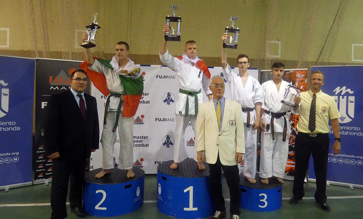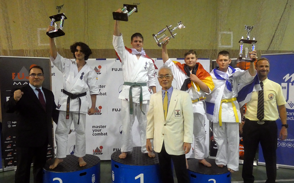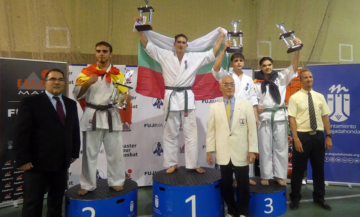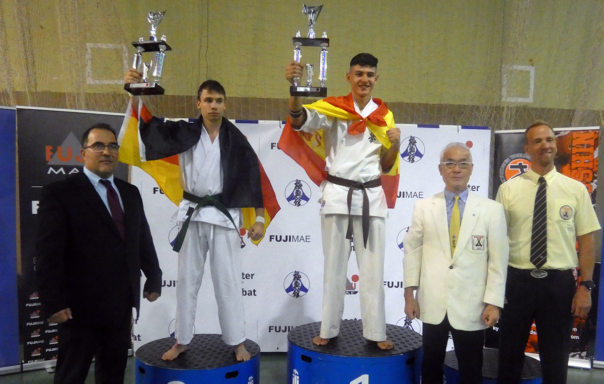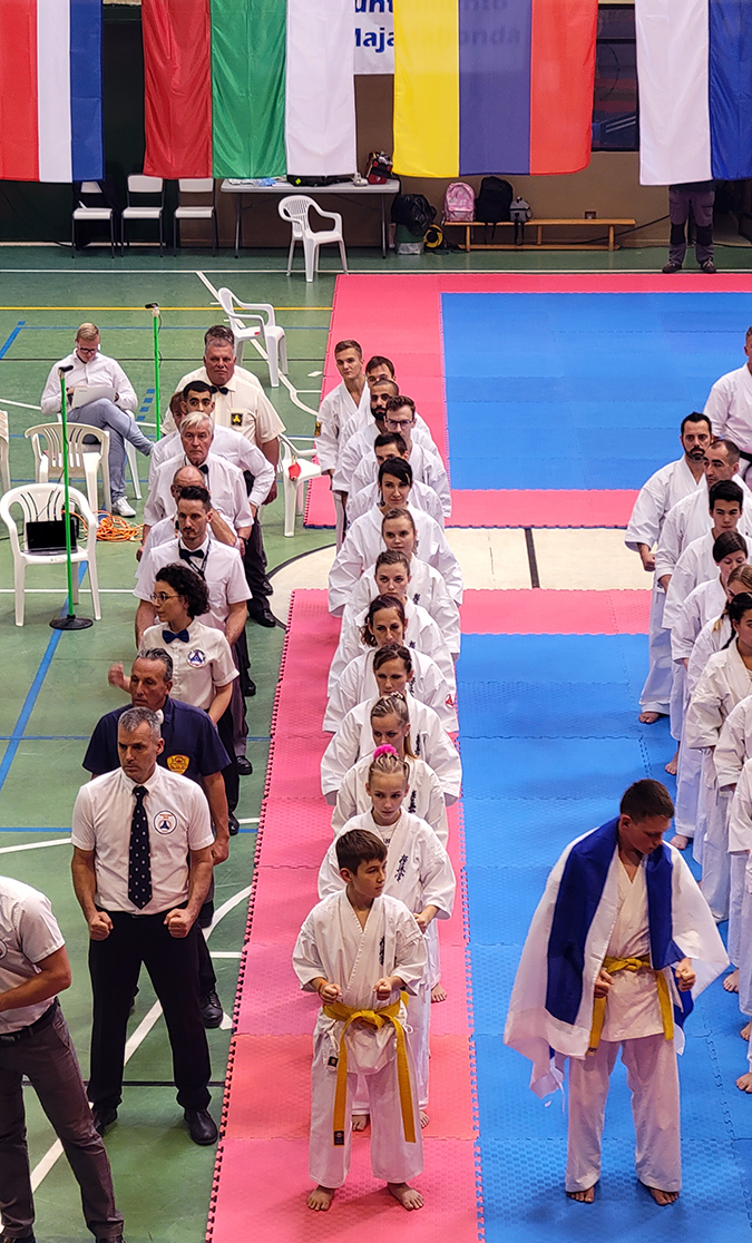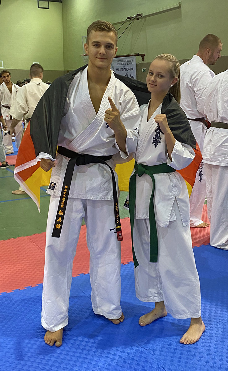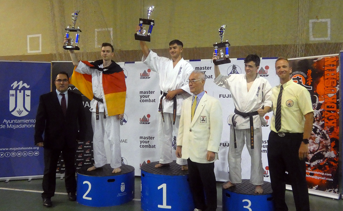 Почти все наши сборники по ката выполнили задачу минимум, которую мы поставили каждому индивидуально, и очень достойно впервые в своей спортивной карьере боролись за звания лучших по ката. Однако, чтобы победить в таком субъективном виде, как ката, мало было хорошо исполнить ката – поэтому, к сожалению, девушки остались без наград… Зато наши два парня порадовали на славу – Илья Горшков занял второе место среди юниоров 16-17 лет, а Стивен Деманов стал ЧЕМПИОНОМ Европы в мужской категории. После катистов вышли наши сборники по кумитэ – это были практически лучшие бойцы нашей школы на сегодня в разных возрастных и весовых категориях. Однако правила спортивного кумитэ у юношей и юниоров сводились к тому, что запретили бить в голову ЛЮБЫЕ техники ногами, оставляя нас без любимых „фишек“ и нашего оружия. В результате таких нововведений и судейских ошибок, не всем удалось реализовать своё превосходство на татами, и некоторые из наших парней остались без наград, или получили медали рангом ниже. Хорошо, что наши главные бойцы – братья Демановы расставили всё по местам – Сэмпай Иван стал чемпионом Европы в абсолютной мужской категории, а Стивен Деманов, поставил своеобразный рекорд не только нашей школы, но и всей страны – выиграв на одном чемпионате сразу ДВА титула чемпиона Европы, став сильнейшим по кумитэ!!! Спасибо тем, кто верил в нас и переживал, спасибо Герду и Юрию Киршу, которые поддержали, помогали, и практически участвовали в этом празднике. ОСУ!!!