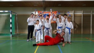 Нас пригласили на кубок новичков наши старые знакомые из города Ведель. Сэмпай Стивен, который с начала этого сезона полностью тренирует группу младших поясов, создал свою команду и полностью сам справился с организацией этой поездки! Иван Кроль, боец взрослой сборной, решил ему помочь и отправился на турнир в качестве судьи.