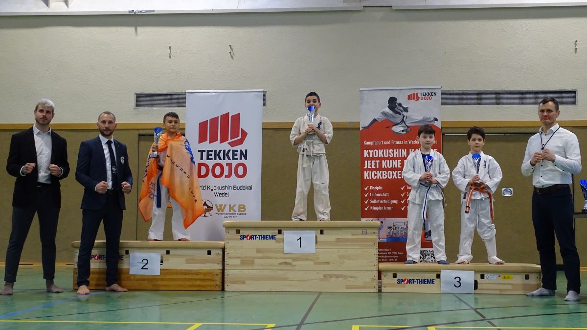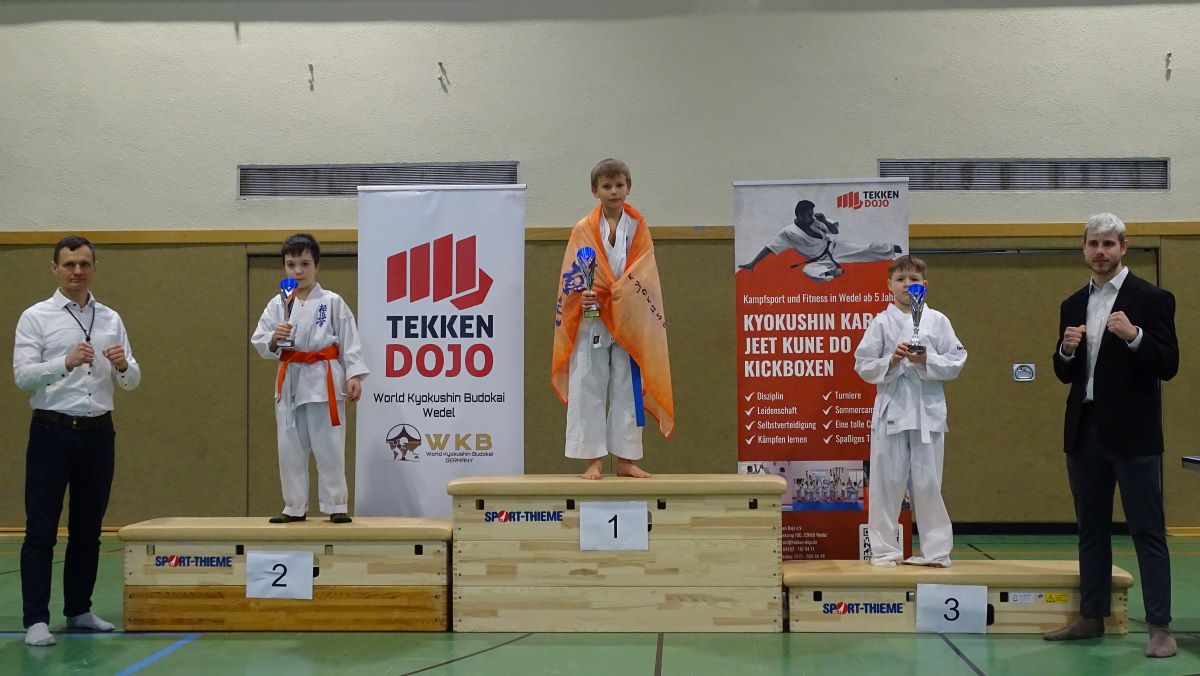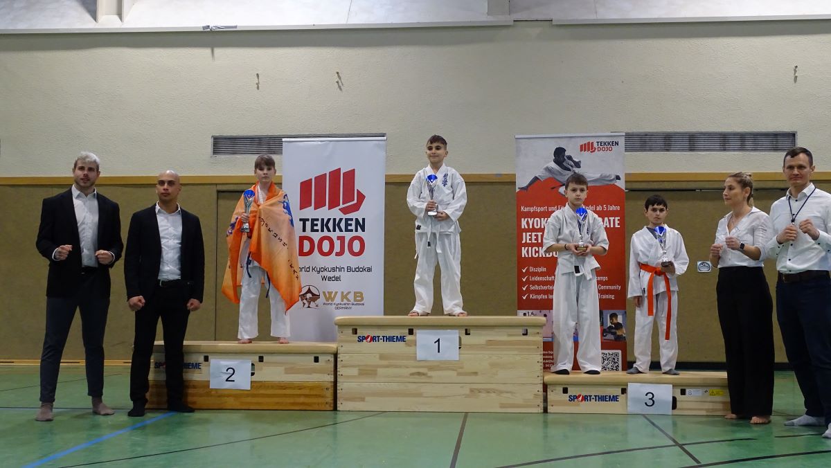 Про каждого из наших парней-новичков и Полину отдельно, Сэмпай подробно расскажет на ближайшей тренировке. А здесь хочется поздравить всех участников, независимо от места, которое они заняли – ведь первый шаг в спортивном каратэ они сделали! Отдельно хочется отметить нашего папу-новичка Бориса Калишова, который установил ещё один рекорд Dankezu – он стал чемпионом!