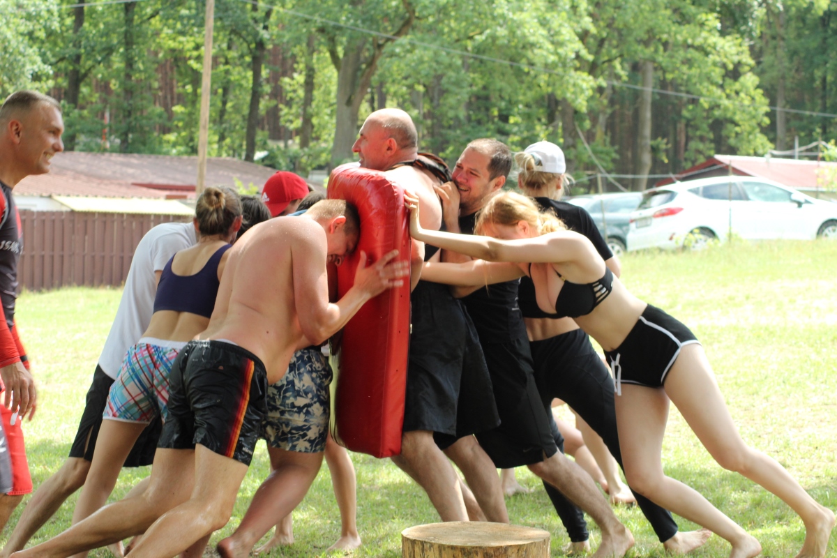 Двадцать летних традиционных лагерей в течение двадцати лет – и ни одного похожего! Это была главная идея всех лагерей – делать их разнообразными, и главное – отличающимися от тренировок в Додзё в учебном процессе. В этот раз нам тоже удалось продолжить традицию. Кроме необычных по содержанию и форме тренировок, мы успели поиграть в различные игры и провести незабываемые эстафеты на воде – разделив всех на тройки “взрослый – средний – младший“, мы создали 4 огромных команды, где именно тройка стартует одновременно, перекидывая бревна, переплывая на досках озеро, пробегая кросс и выполняя другие задания!