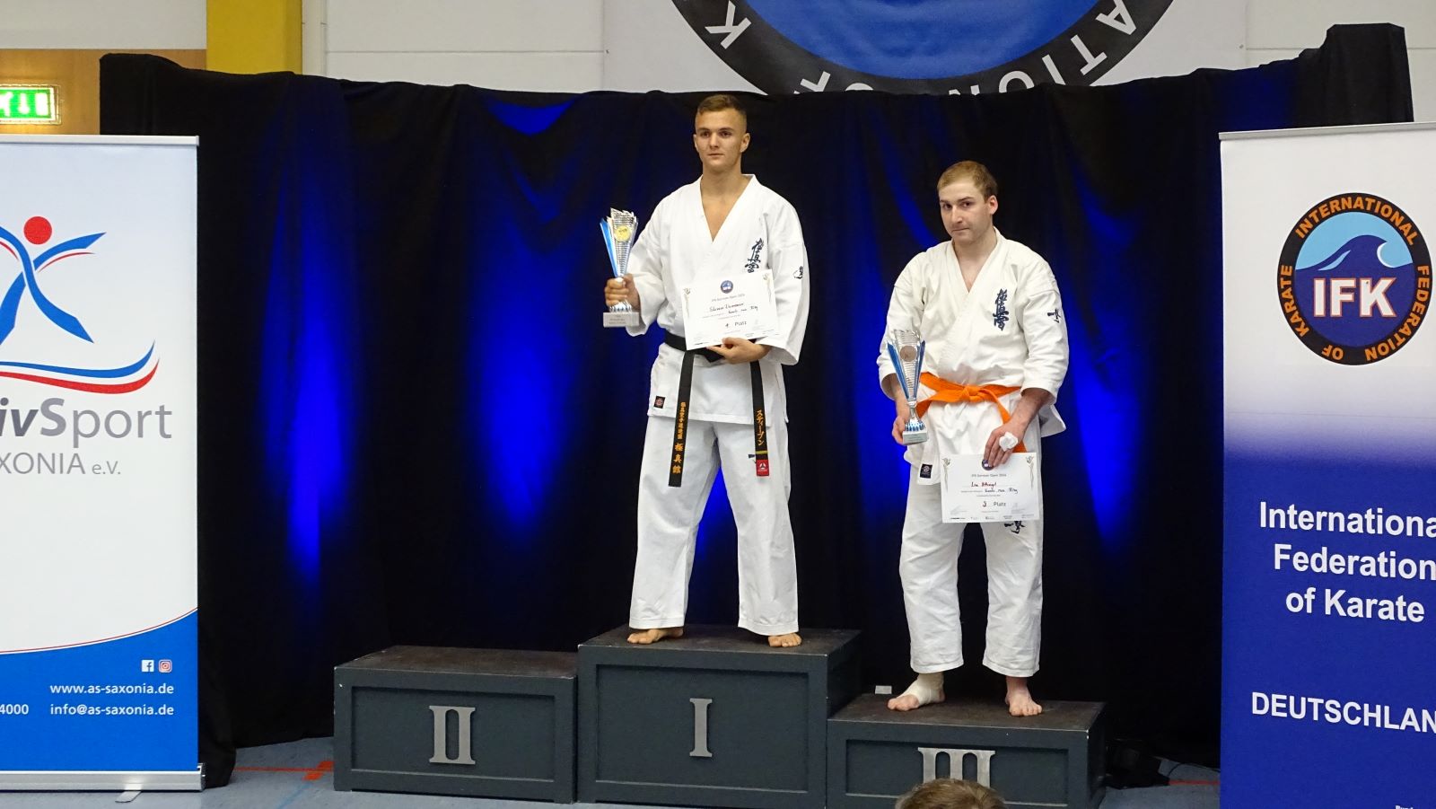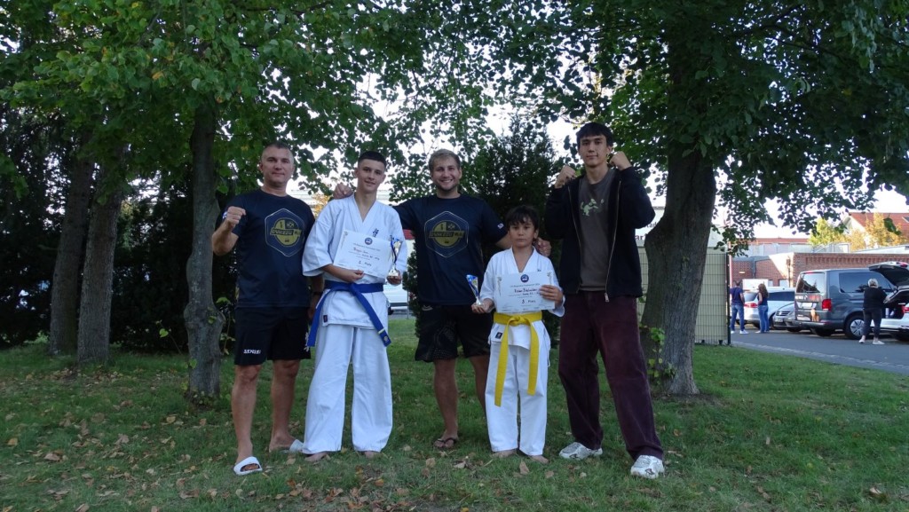 Наша Юлия, одна из трёх участниц предстоящего чемпионата МИРА по ката решила проверить свою готовность на этом турнире. Она в обоих раундах одержала победы по очкам и стала первой в истории нашей школы чемпионкой Германии по Ката! Андрей Мирошников впервые после серьезной травмы принял участие и стал на пьедестал третьим! Для Ратмира и Драгоша это был первый серьезный турнир и поэтому мы очень рады их победам и набранному опыту. Не повезло нашему Тимуру, у которого не оказалось соперника, и он не смог принять участие. А Стивен Деманов доказал в очередной раз, что среди взрослых мужчин у него нет равных конкурентов в Германии, выиграв на иппон оба поединка! Классный старт нового сезона задан, главная цель – чемпионат МИРА в Лейпциге 10 мая 2025-го года!