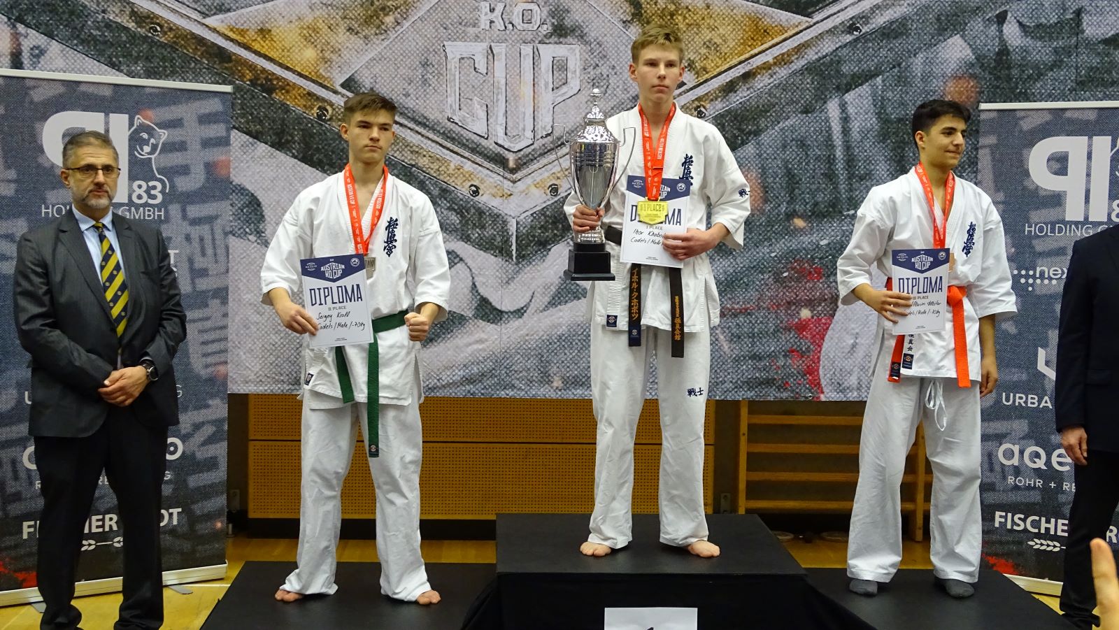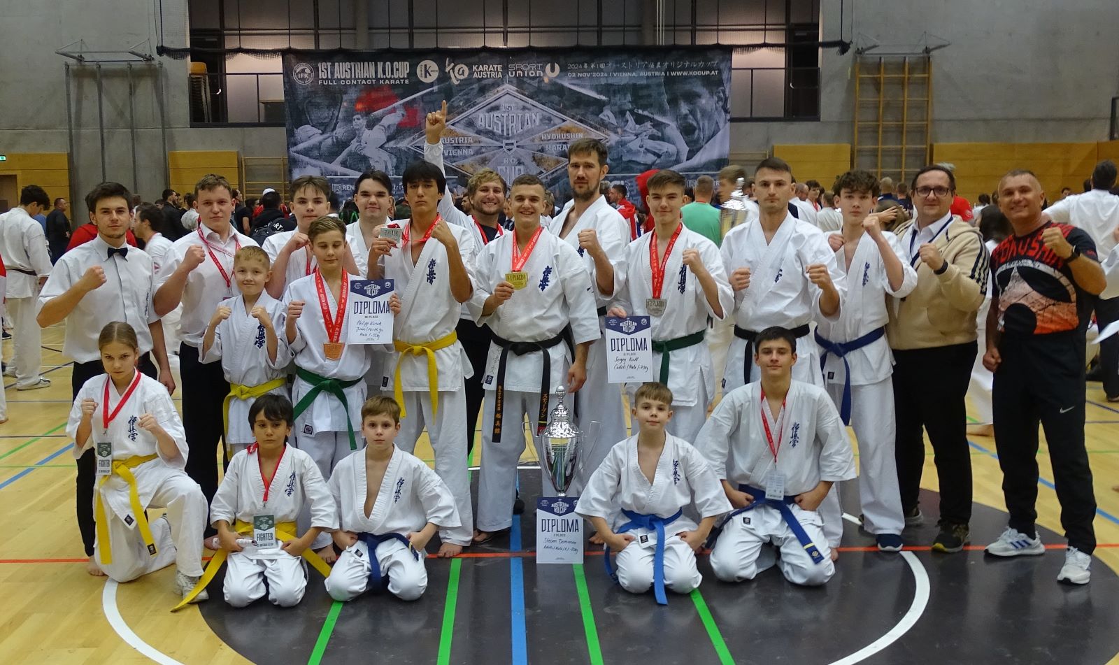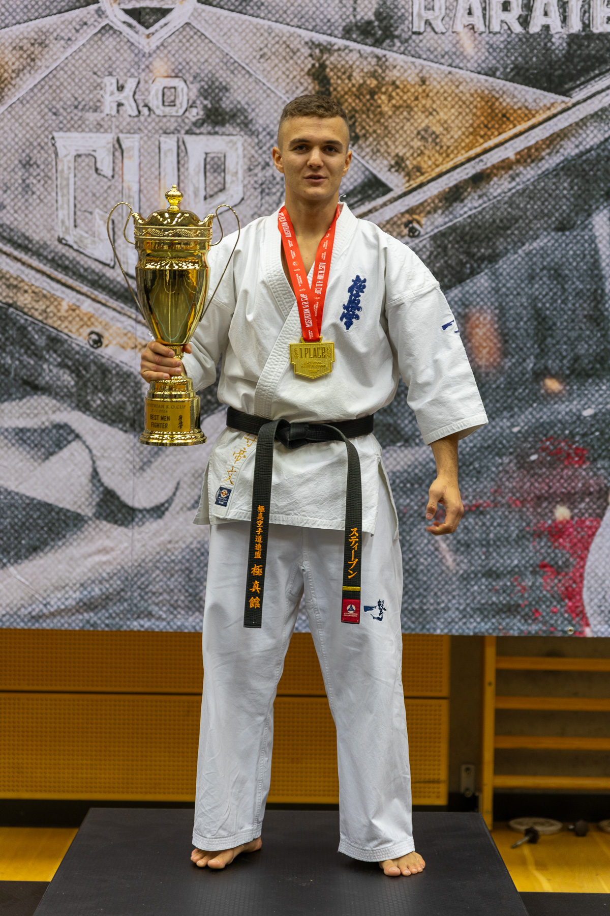 Другое дело в категориях взрослых мужчин… Денис Тимофеев оказался без единого соперника в категории для взрослых новичков, но не отказался от участия, а выступил в абсолютке среди профи! И не смотря на проигрыш по решению судей, он очень даже неплохо провел свой поединок! Игорь Анхаль, вернувшись после огромного перерыва, решил испытать свои силы сразу на двух турнирах подряд, и, разбив себе ногу на первом, не смог уберечь эту травму в поединке с финалистом – хорошим молодым бойцом из команды Йонаса Розина, неоднократного чемпиона Мира и Европы. Иван Кроль закончил свой поединок за 10 секунд, в полном смысле слова вынеся своего соперника красивейшим ударом в прыжке ногой в голову! Этот нокаут мог стать лучшим нокаутом турнира, а сам Иван, однозначно был претендентом на золото… однако рефери, компенсируя свои старые обиды на наших ребят, посчитал, что удар был выполнен после команды “ямэ“, и дисквалифицировал Ивана с турнира. Стивен Деманов, выполнив программу минимум на Европе в Лондоне, был полон и решимости и желания стать здесь лучшим, и у него это получилось! В первом поединке он сошелся со звездой IKO из Польши Grzegorz Kedzierski и в первом же времени по решению судей одержал победу! В финальном поединке против шведского бойца Стивен опять стал лучше в первом же раунде – настолько превосходил он своего соперника, что судьи оценили его единогласно! НО кроме чемпионского титула наш Стивен стал ЛУЧШИМ бойцом этого турнира, и организаторы отметили его отдельным золотым кубком! Спасибо всем, кто сопровождал нашу команду, болел, переживал, судил, помогал!!!