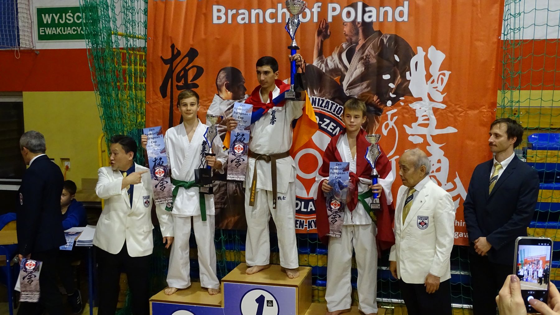 По приглашению Сэнсея из Польши, который принял участие в нашем чемпионате Германии, мы оказались ровно через неделю по возвращению из Индонезии в Польше. Сам турнир интересовал нас как один из тренировочных процессов в подготовке к чемпионату МИРА в Саудовской Аравии. Стивен Деманов заболел прям на кануне турнира, и совершенно не в форме решился на выступление. Первый бой против очень интересного соперника из Армении он выиграл с оценкой вазари, уверенно выполнив все задачи. За выход в финал уступил по решению судей спортсмену из Украины – сказалась болезнь. Филипп Кирш, так же проходящий адаптацию по возвращению добрался до финала и там уже, по решению Сэнсея не стал выступать – в итоге увёз домой второе место! Ну и третий боец – Сэмпай Иван Деманов так же проверил свои силы вначале подготовке и выиграл оба своих поединка с оценками! В итоге – Иван вернул себе звание чемпиона, которое уже давно не выигрывал!